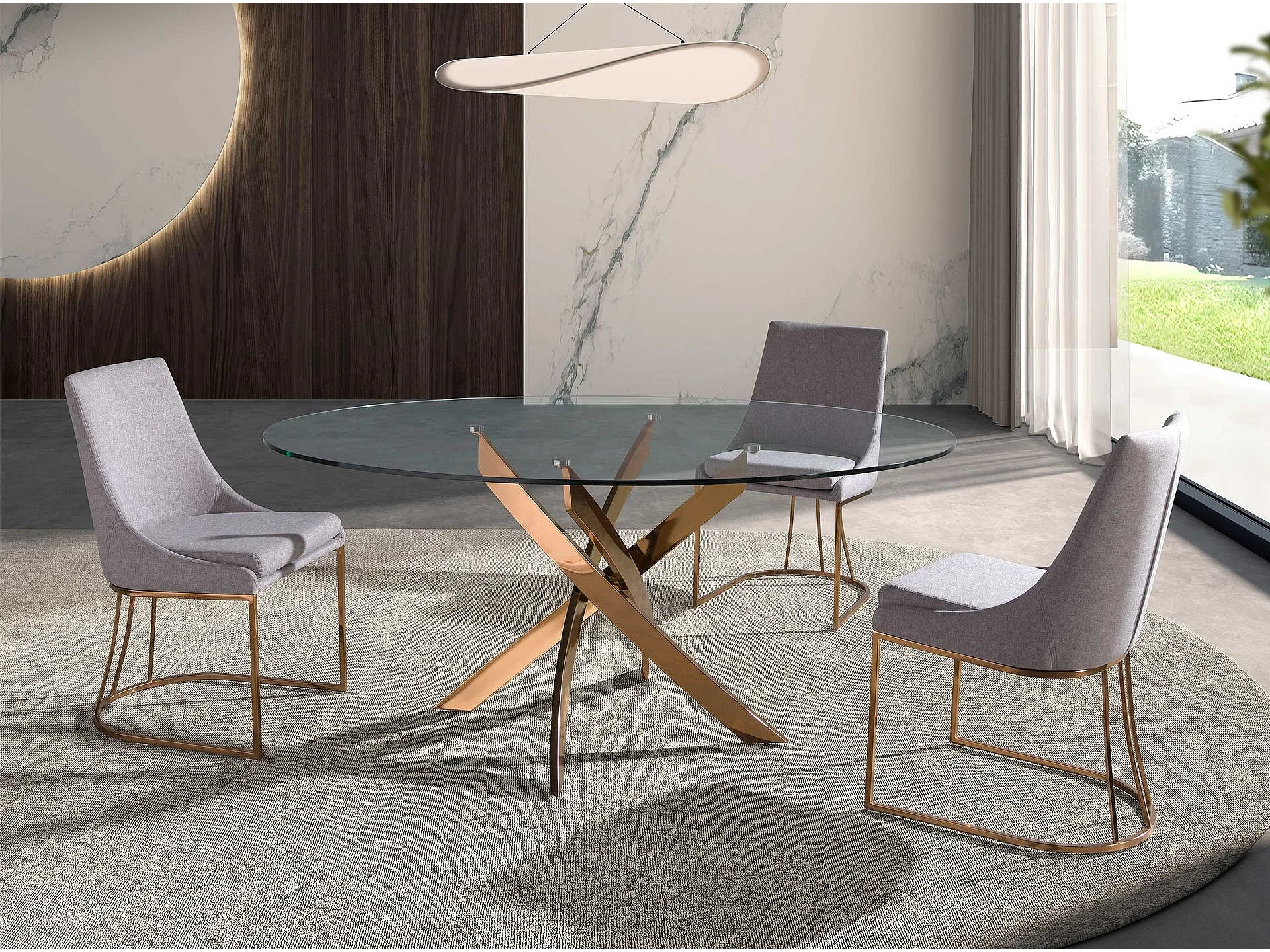 Table de salle à manger ronde en verre trempé et acier rose 1169-Ø130 ANGEL CERDA