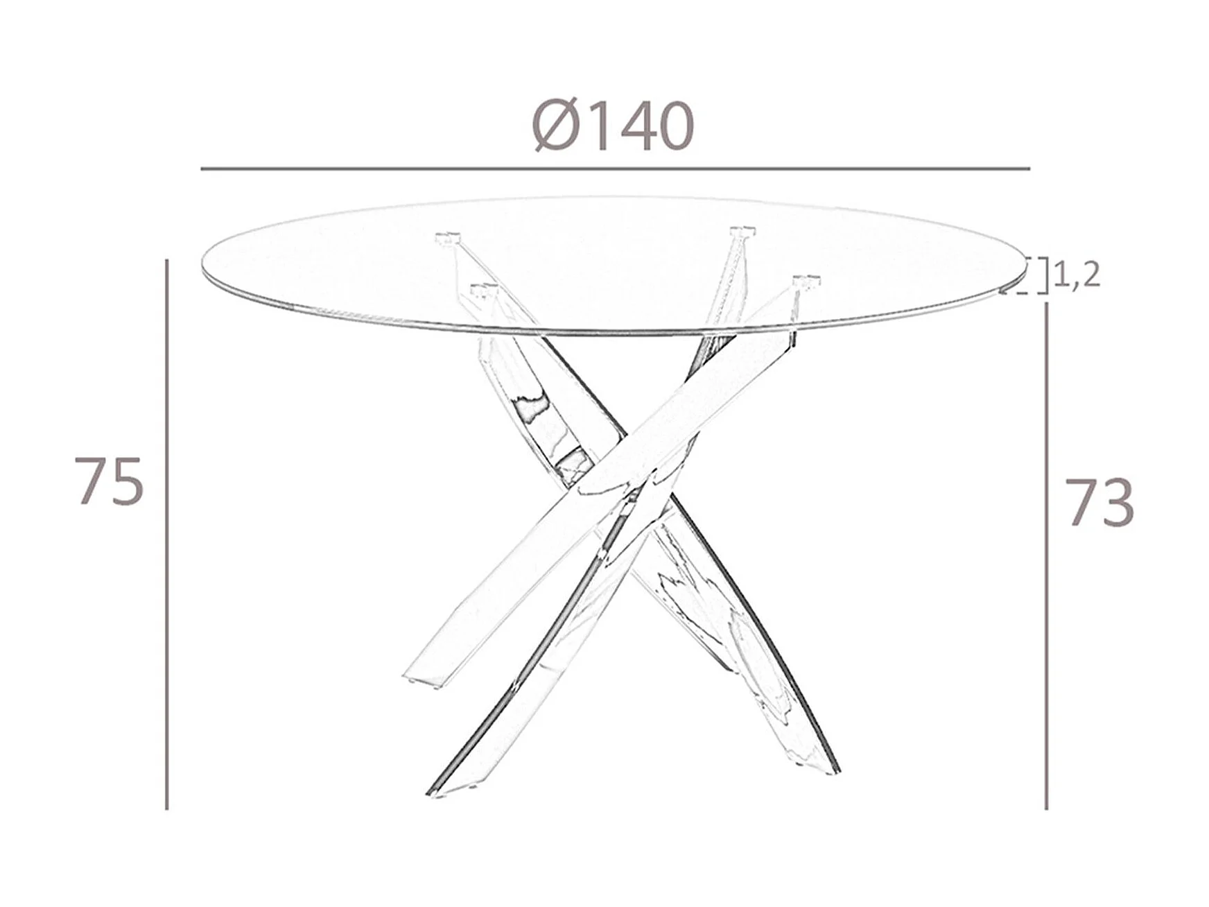 Table de salle à manger ronde en verre trempé et acier rose 1169-Ø140 ANGEL CERDA