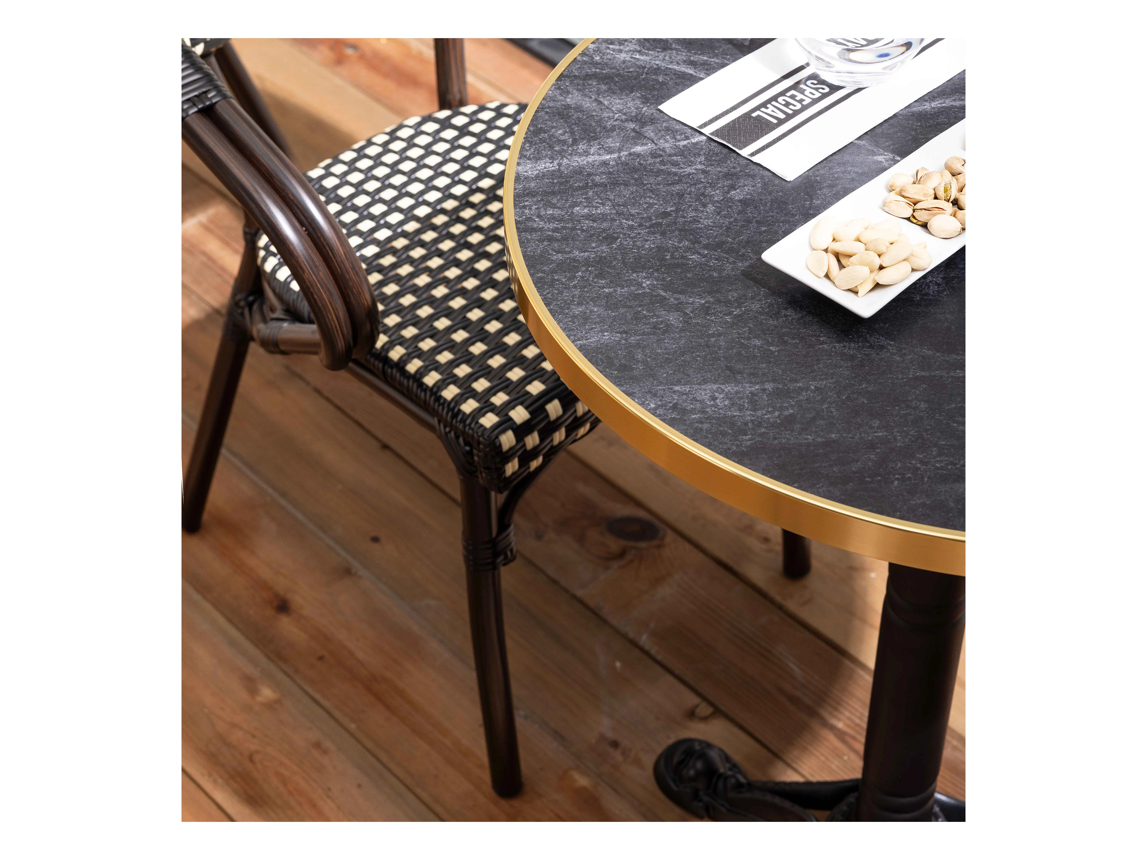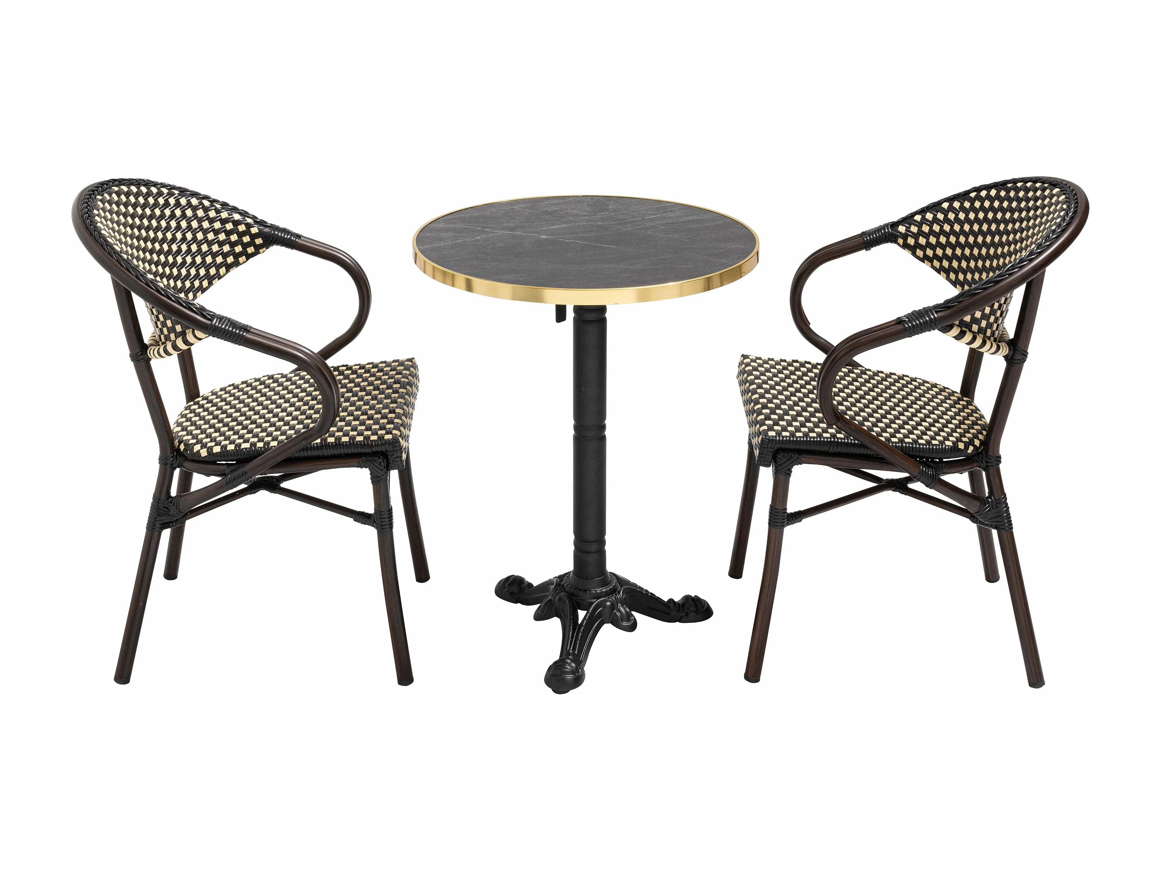 Table de terrasse 60cm inclinable marbre noir et 2 chaises noires