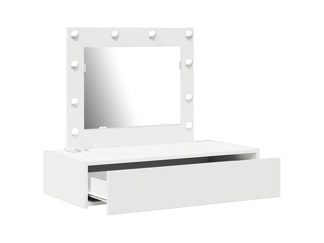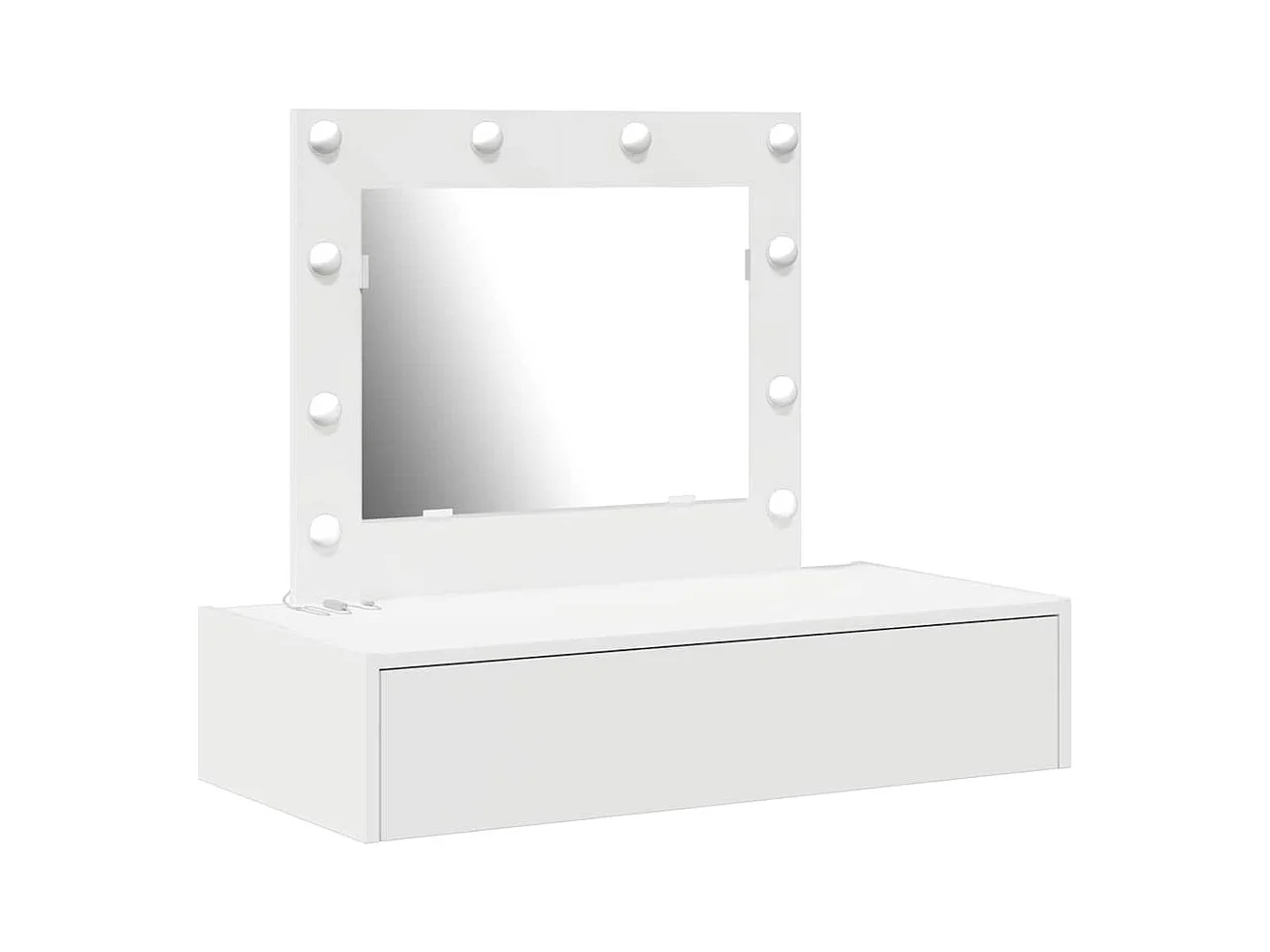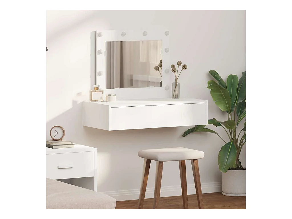 Coiffeuse à LED avec 2 armoires Blanc Bois d'ingénierie FR84963