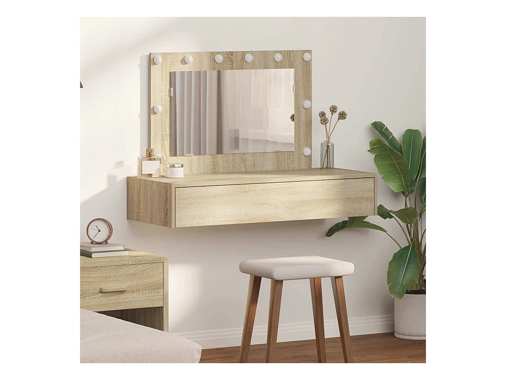 Coiffeuse - Table de maquillage avec éclairage LED 100x40x135 cm MDF Chêne FR921283