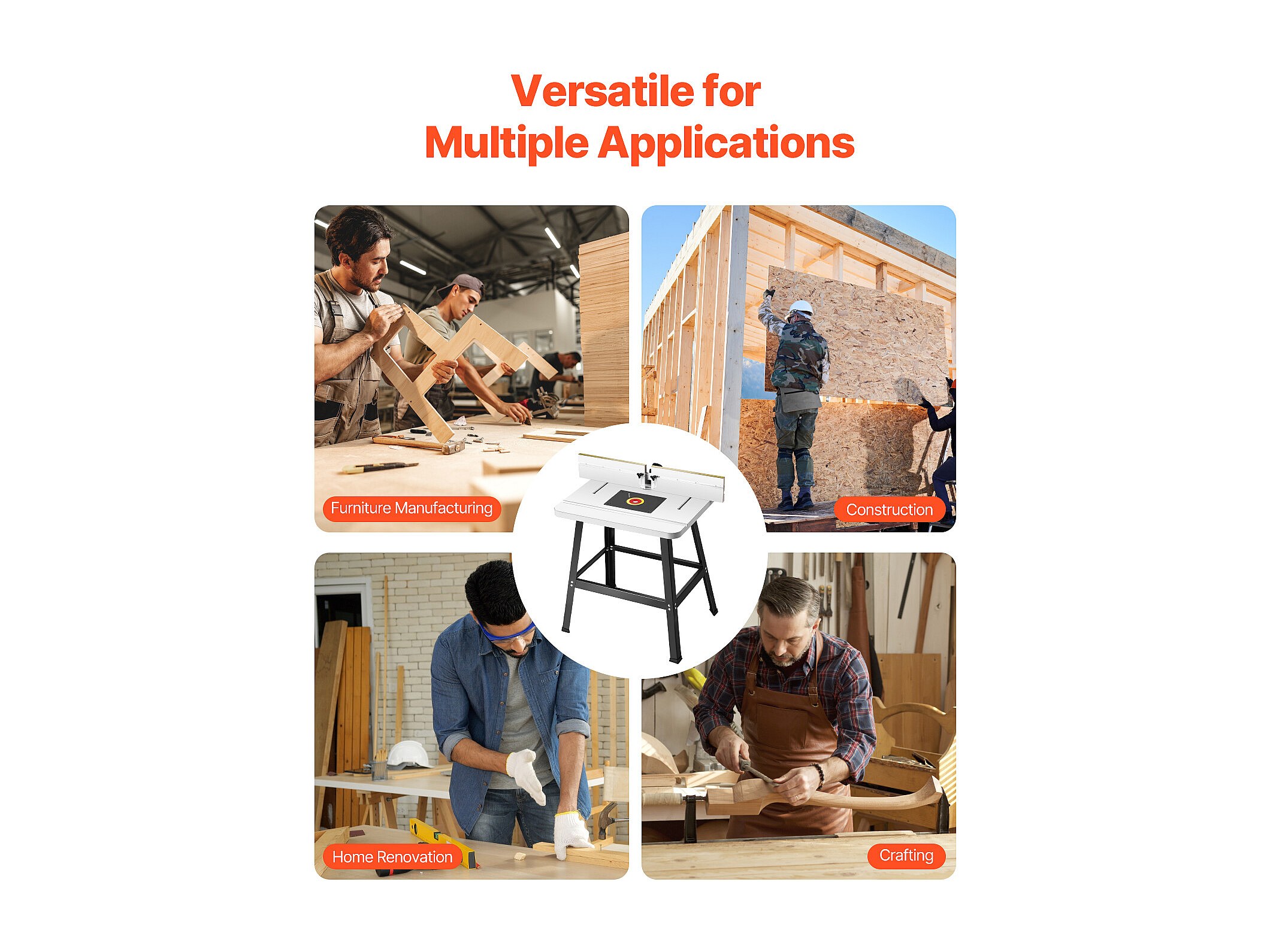 • Une table, plusieurs utilisations : Compatible avec plusieurs toupies, cette table de toupie prend en charge différents forets pour gérer la coupe, la coupe, le perçage, le façonnage, l'assemblage à queue d'aronde, etc. Que ce soit pour des travaux de précision ou des tâches complexes, elle vous couvre