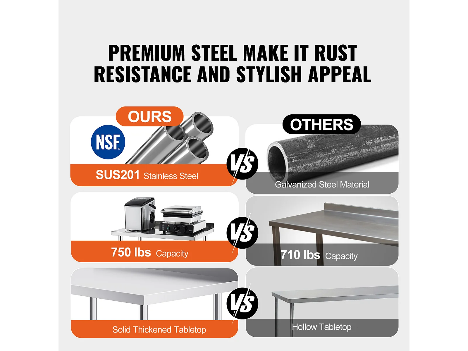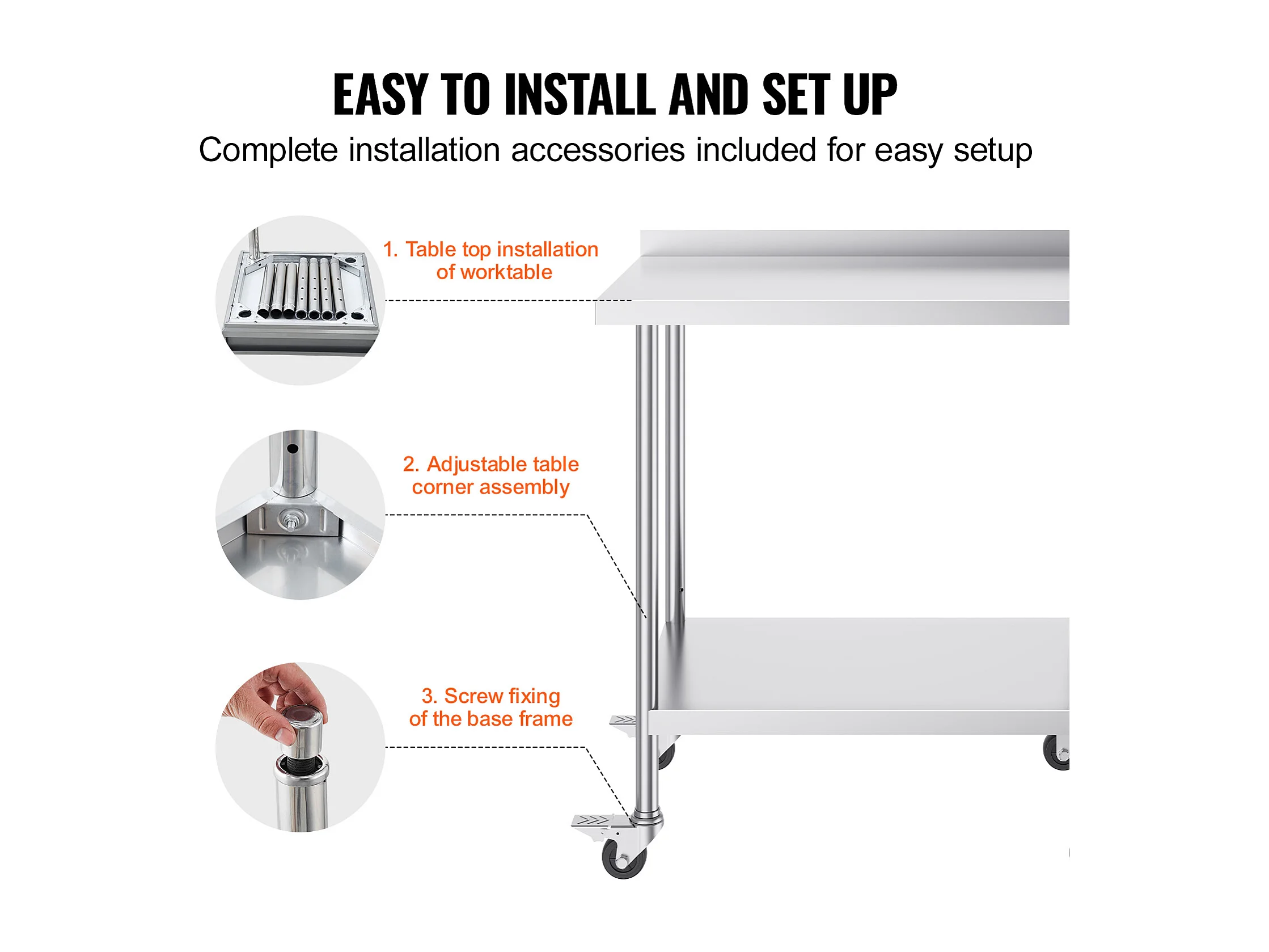 Table de Travail en Acier Inoxydable SucceBuy, 610 x 711 x 660 mm, Table de Préparation des Aliments Commerciale pour Restaurant