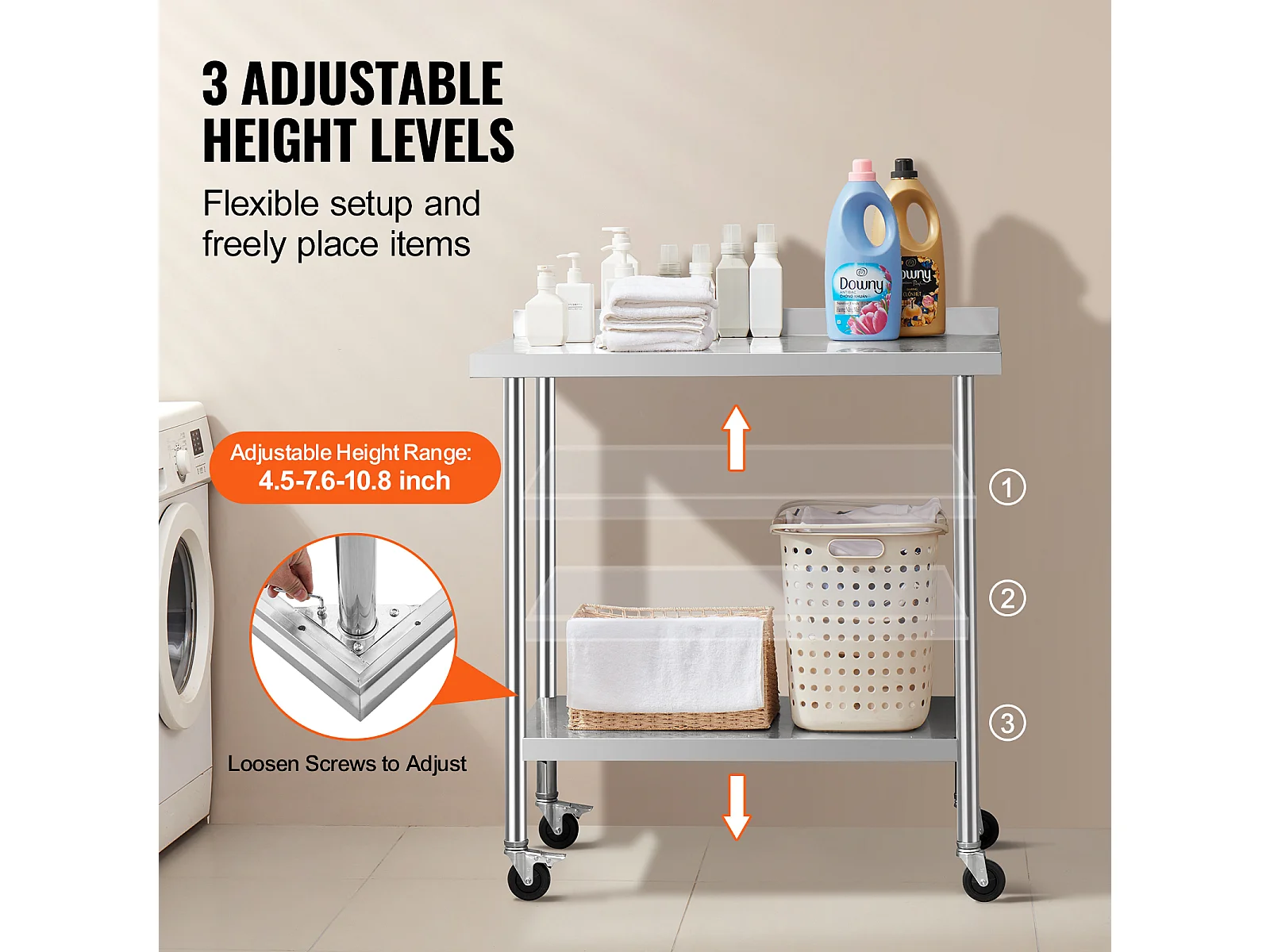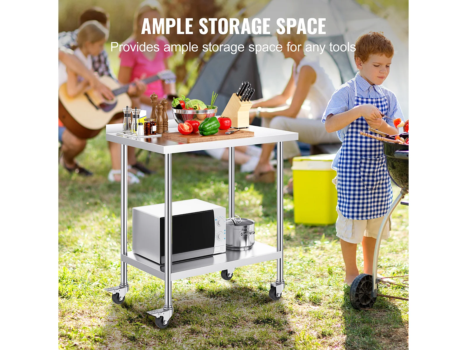 Table de Travail en Acier Inoxydable SucceBuy, 610 x 711 x 751.6 mm, avec 4 Roulettes, Table de Préparation Alimentaire Commerciale