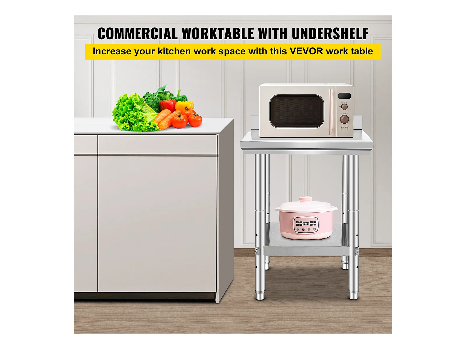 Mesa de Trabajo de Cocina SucceBuy, Mesa de Preparación en Acero Inoxidable, 60.96x60.96x86.36 cm, Puesto de Trabajo Alimentario Comercial