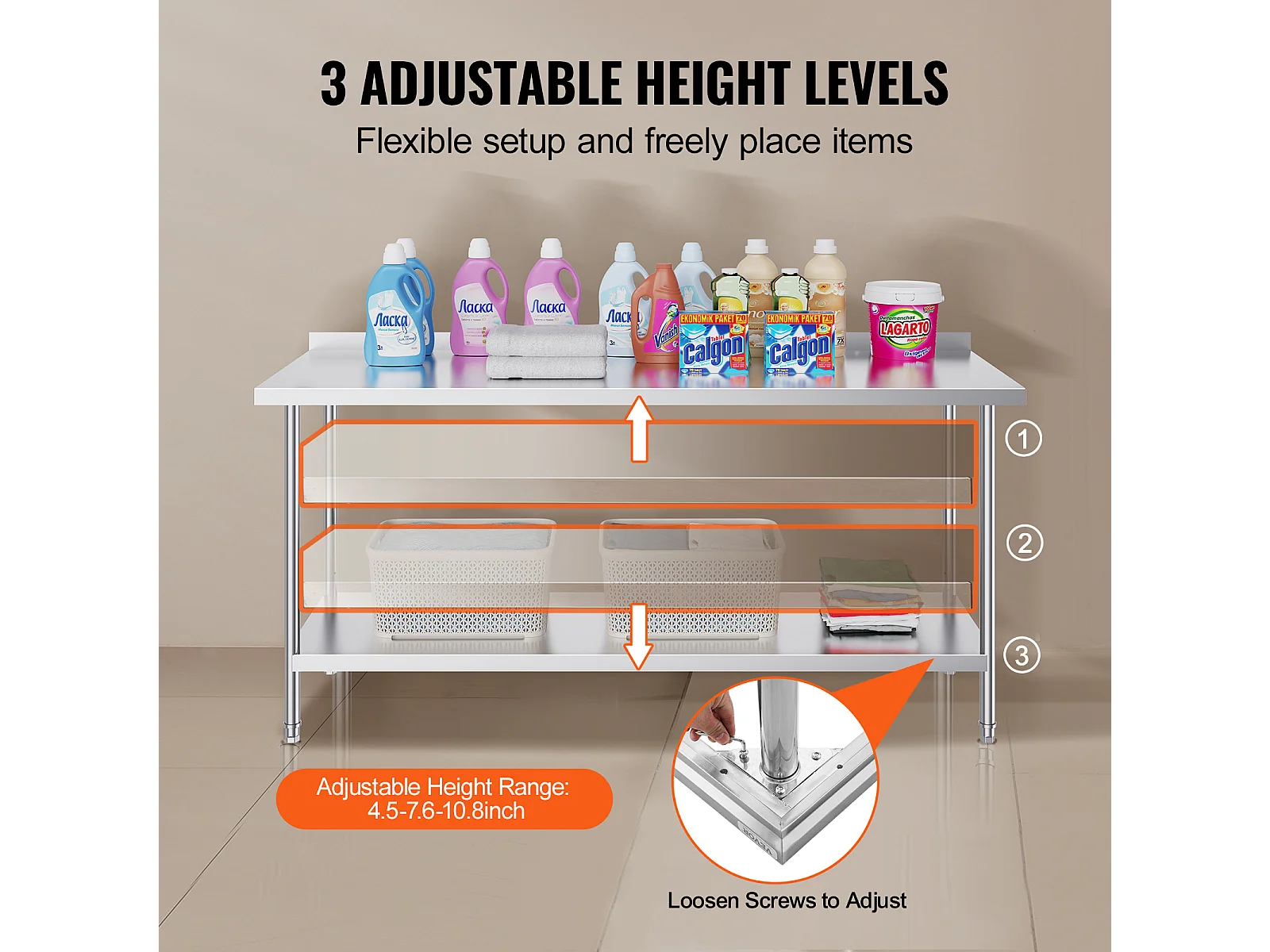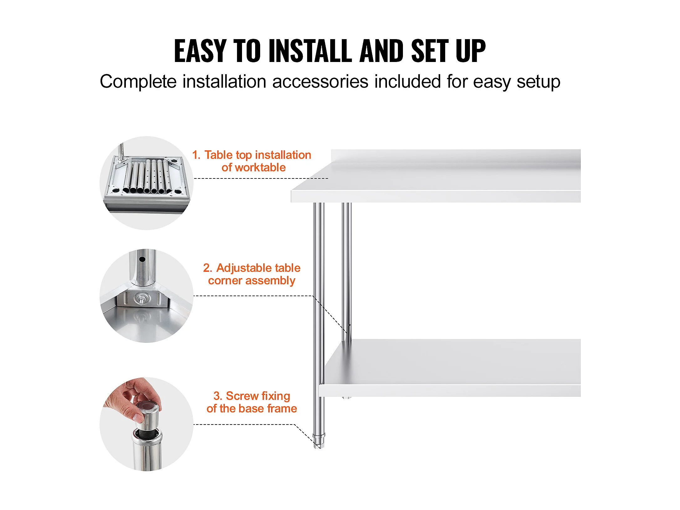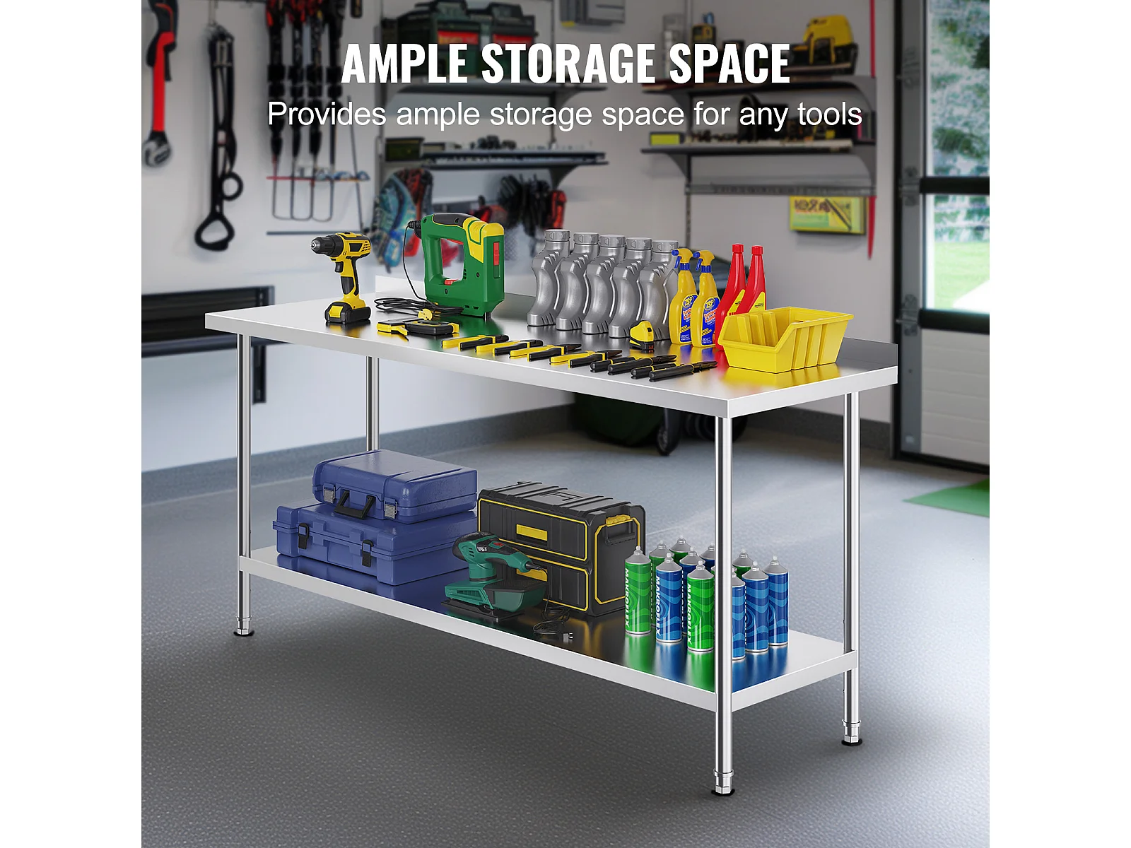 Table de Travail Cuisine SucceBuy, 61 x 182,9 cm, Table de Préparation des Aliments, pour la Préparation en Cuisine, au Restaurant et en Atelier