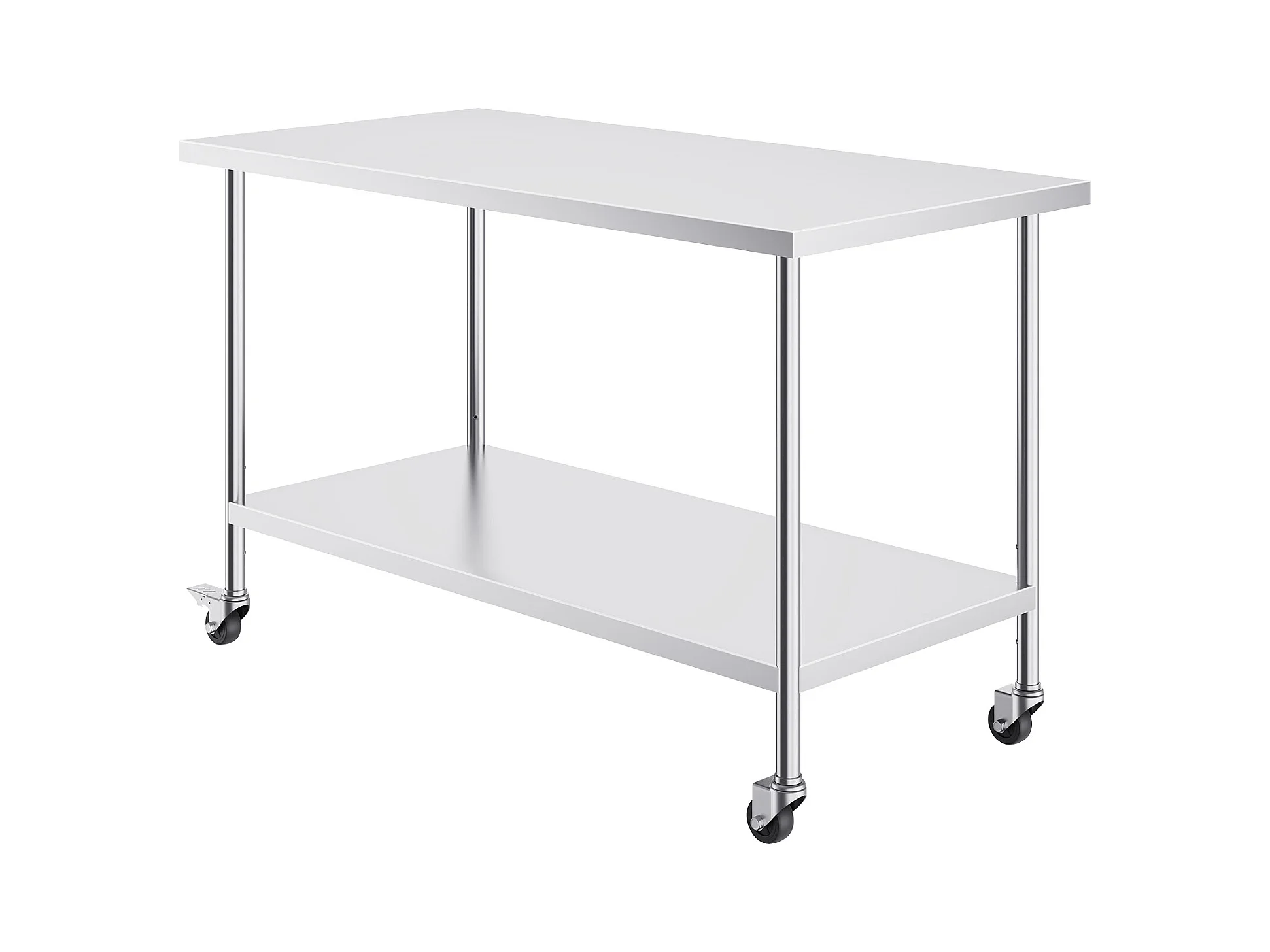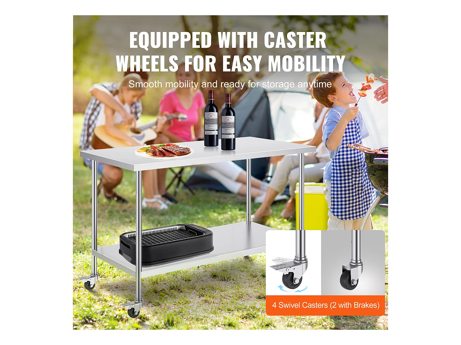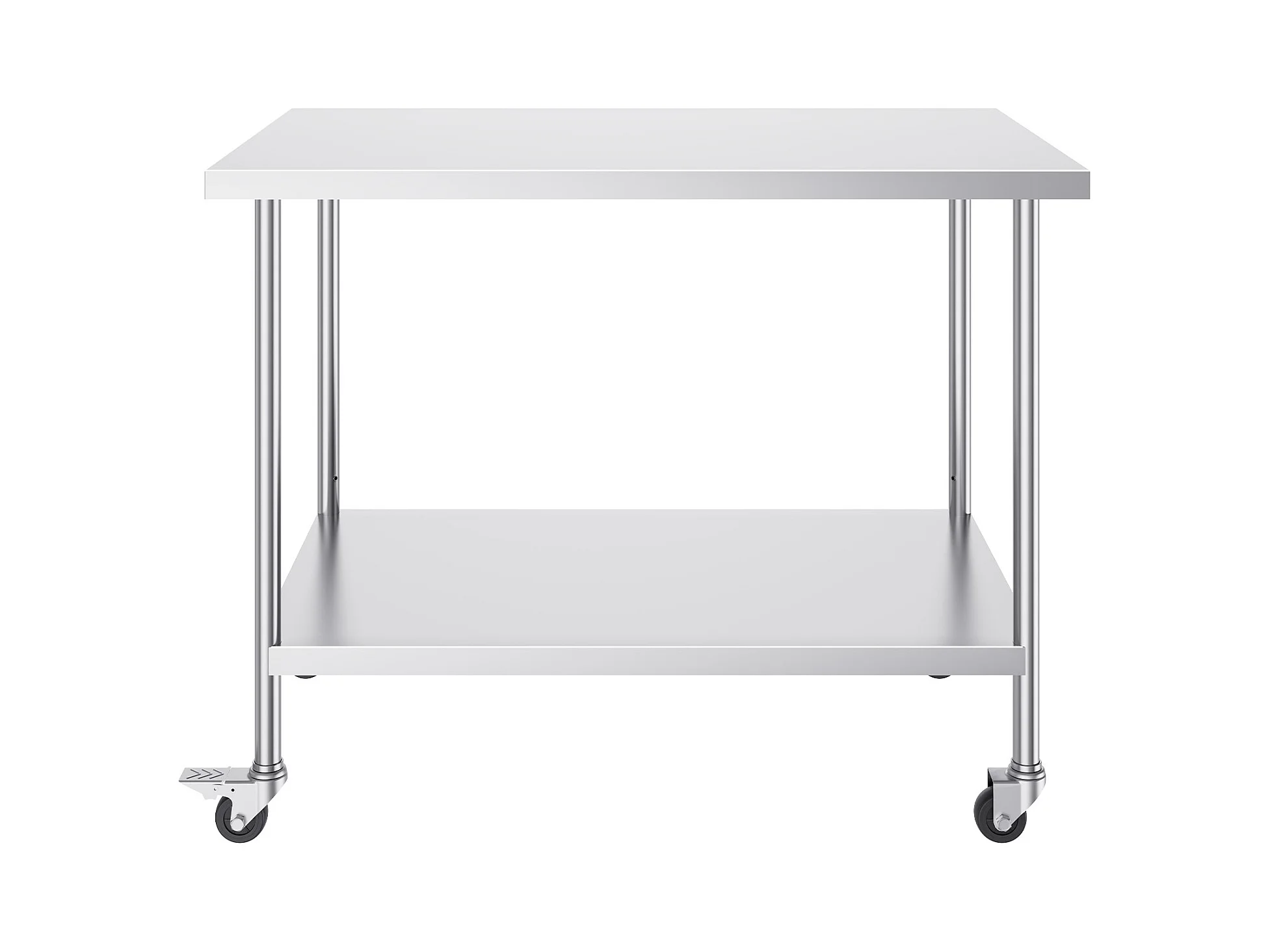 Table de Travail Cuisine SucceBuy, 61 x 122 cm, Table de Préparation Commerciale avec 4 Roulettes, Table de Travail en Acier Inoxydable