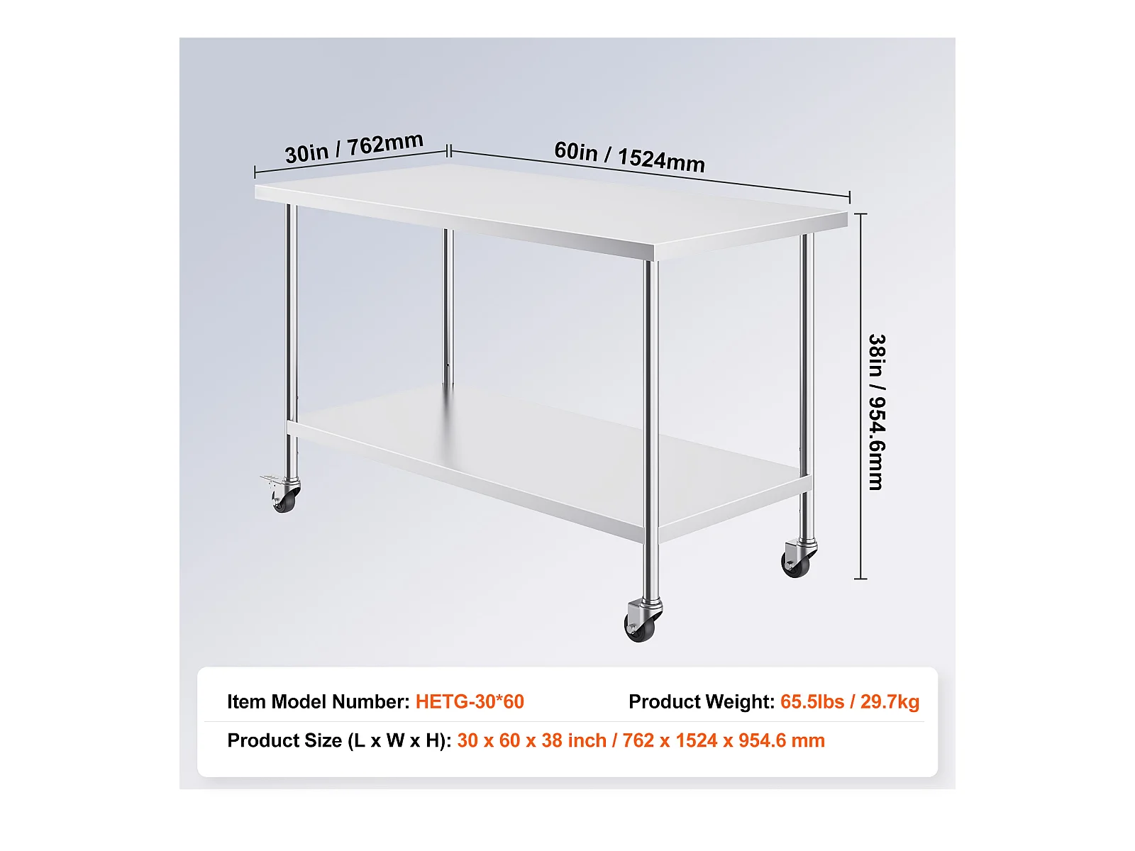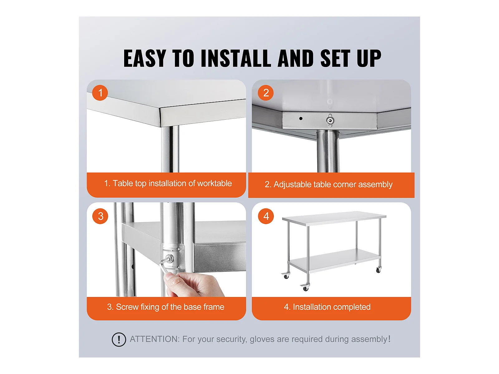 Table de Travail Cuisine SucceBuy 60.96x91.44x86.36 cm, Table de Préparation de Travail en Acier Inoxydable