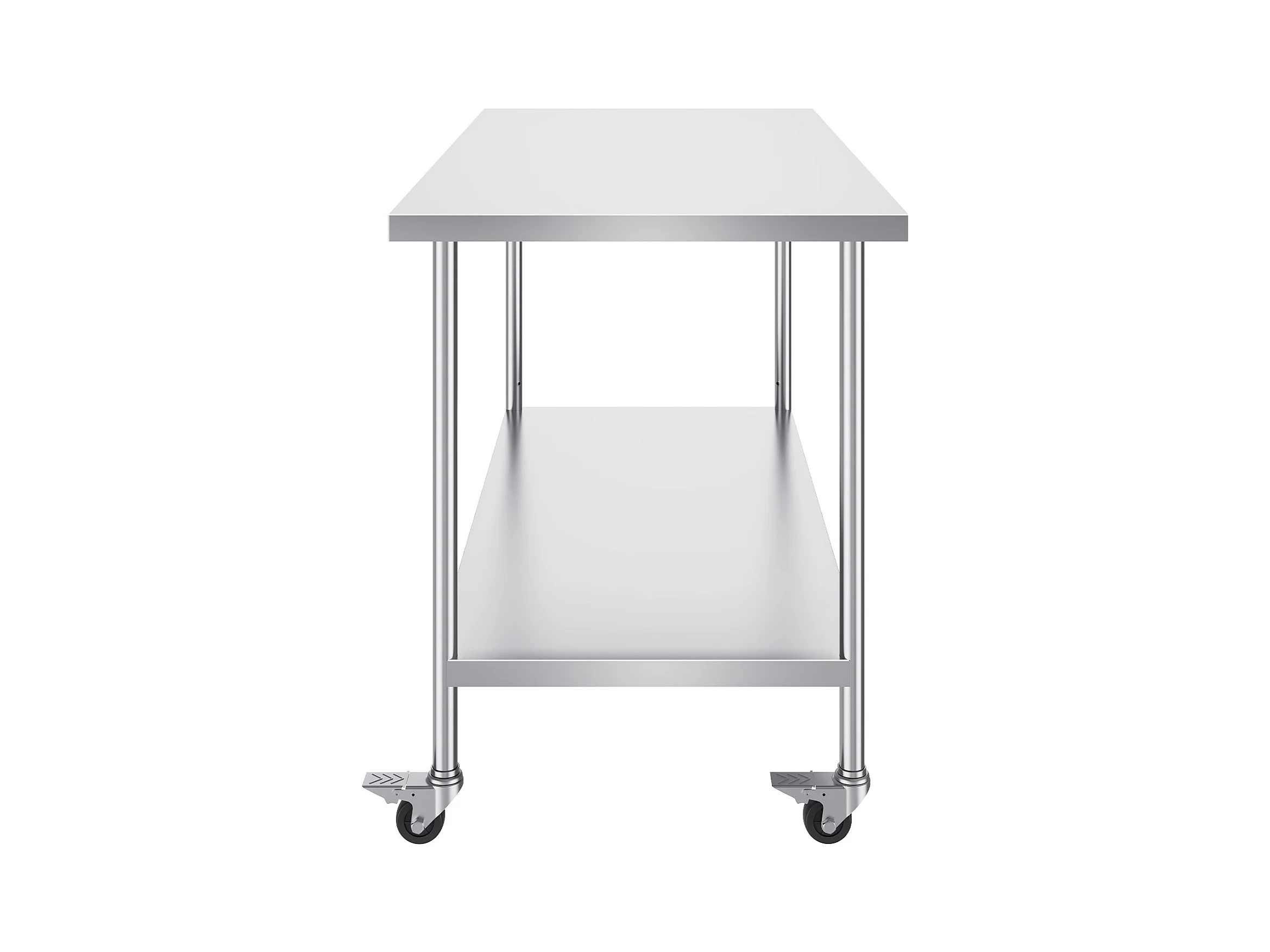 Table de Travail Cuisine SucceBuy, 76 x 152 cm, Table de Travail de Préparation en Acier Inoxydable avec 4 Roues et Hauteur Réglable