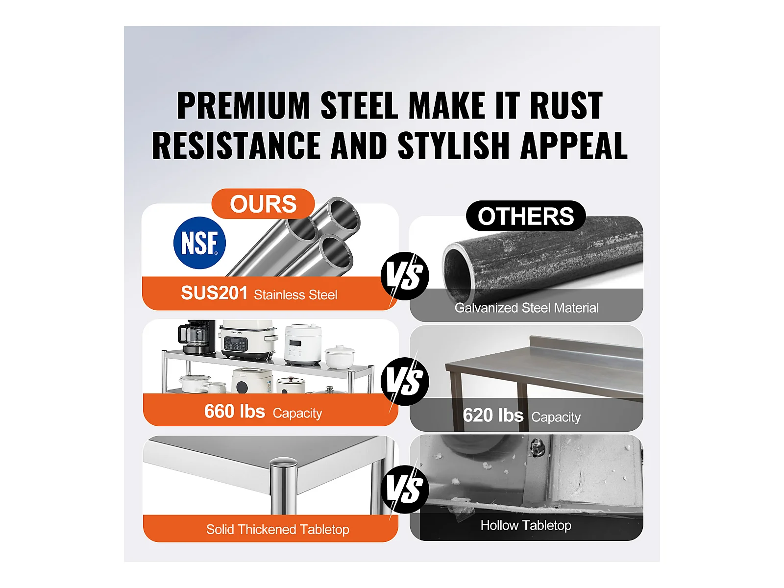 Table de Travail en Acier Inoxydable SucceBuy, 610 x 711 x 660 mm, Table de Préparation des Aliments Commerciale pour Restaurant