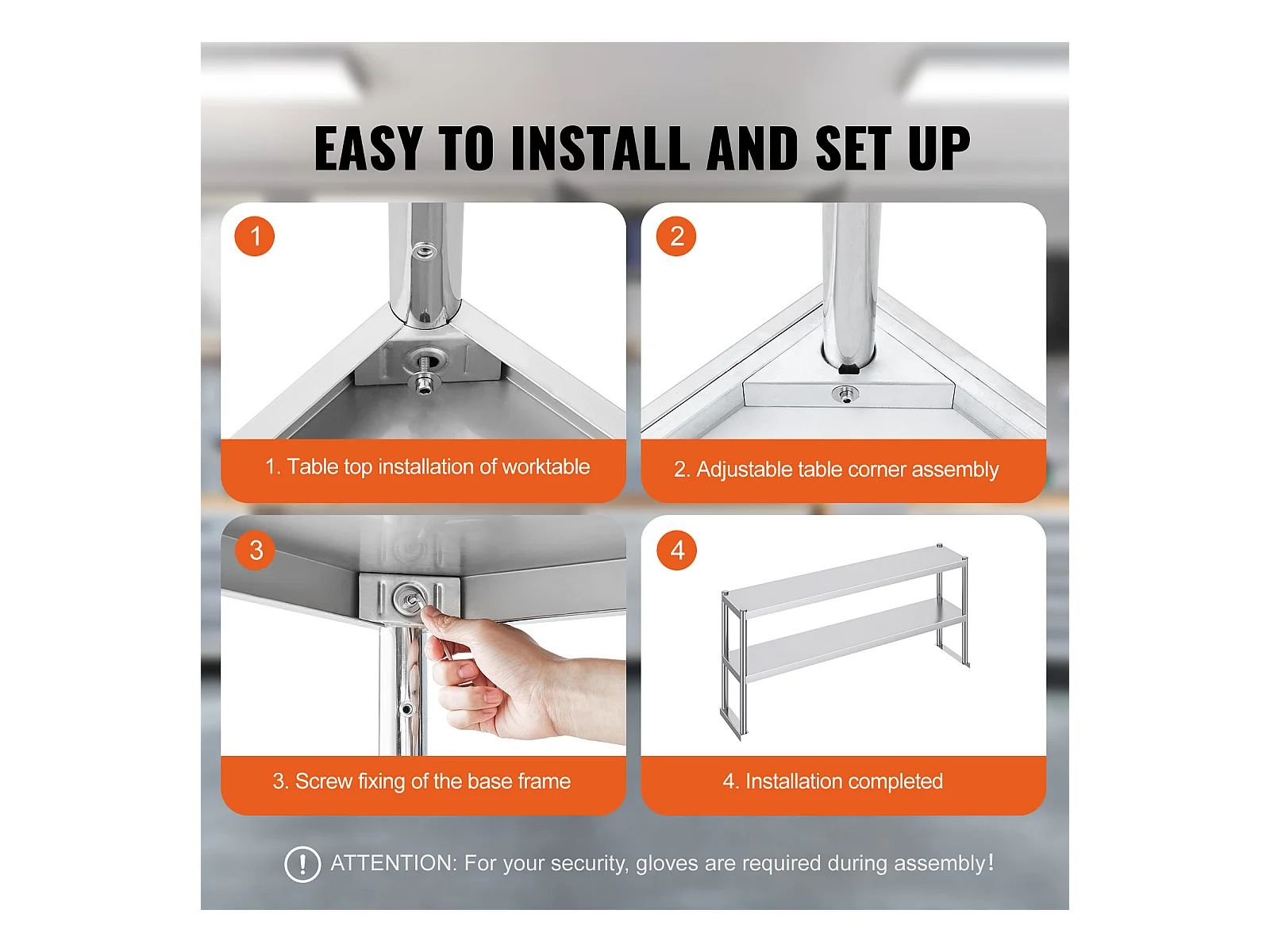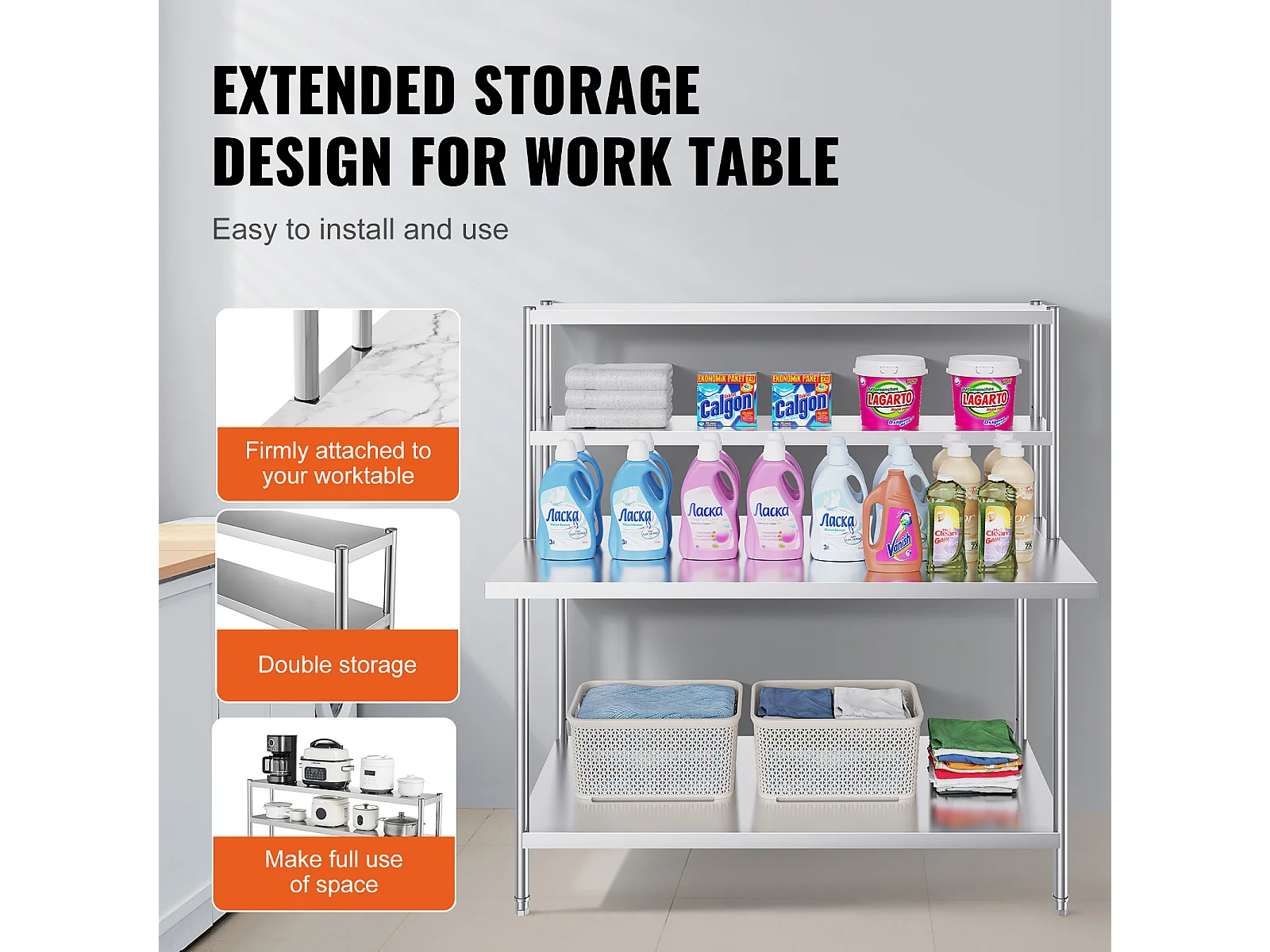 Table de Travail Double à 2 Niveaux SucceBuy, 305 x 1524 mm en Acier, Inoxydable pour Table de Préparation