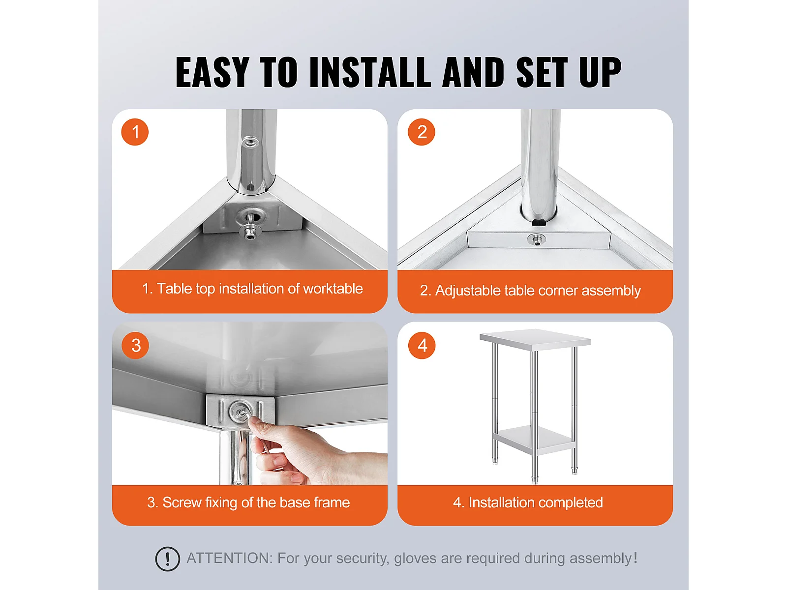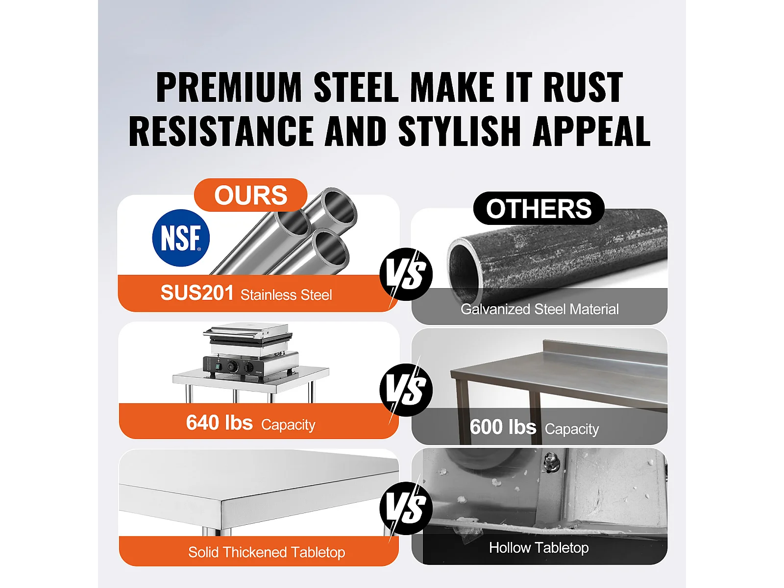 Table de Travail en Acier Inoxydable SucceBuy, 610 x 711 x 660 mm, Table de Préparation des Aliments Commerciale pour Restaurant