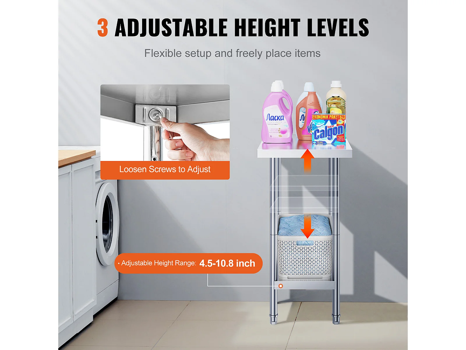 Étagère de Rangement SucceBuy Réglable à 4 Niveaux en Acier Inoxydable, Étagère Robuste, Hauteur Réglable