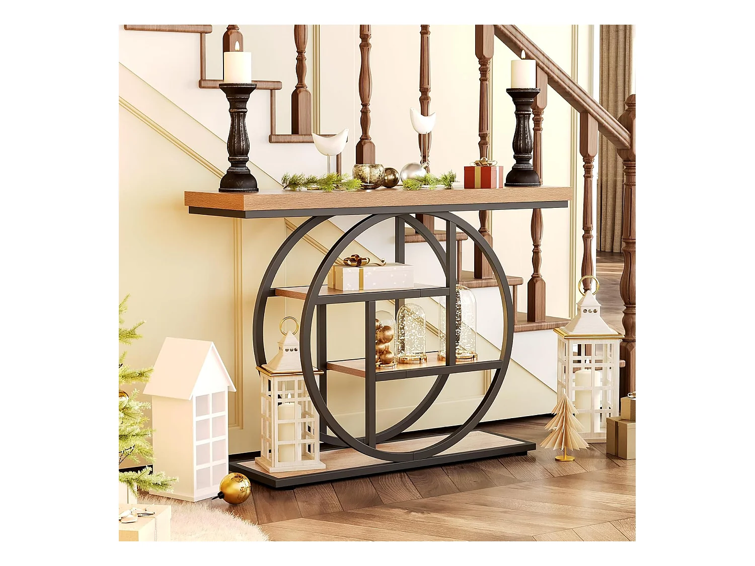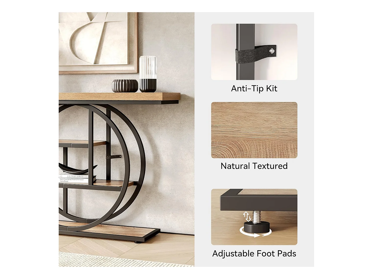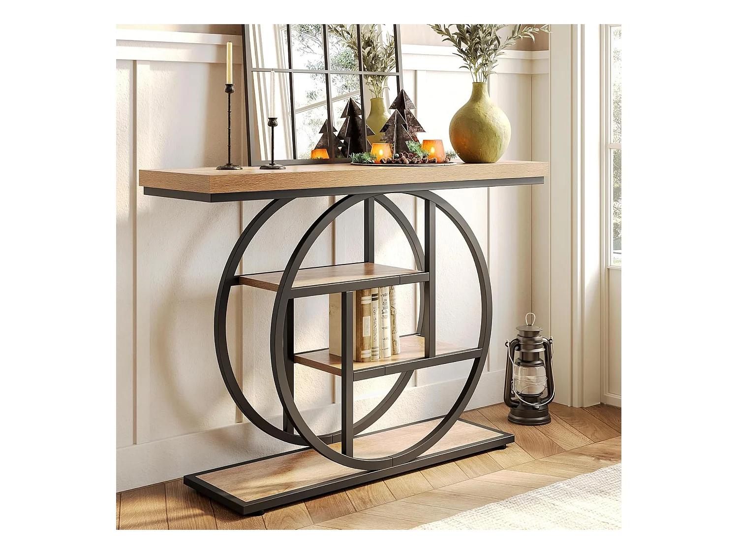 Table d'entrée à 4 étages derrière le canapé, table de canapé Farmhouse 105cm pour le salon, table de hall d'entrée pour le foyer