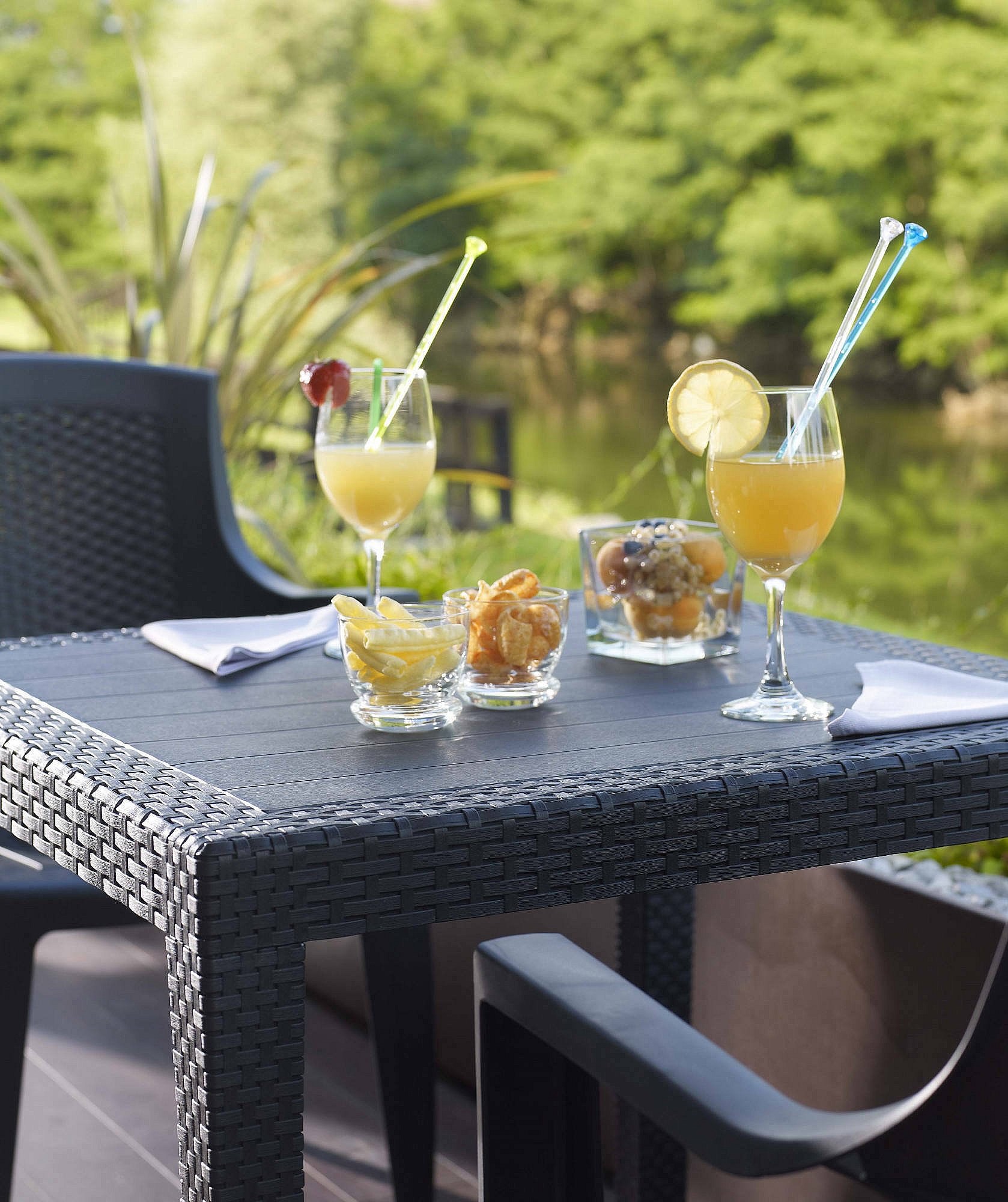 Rucphen Table de jardin noir 110x110x71cm résine tressée et bois acacia