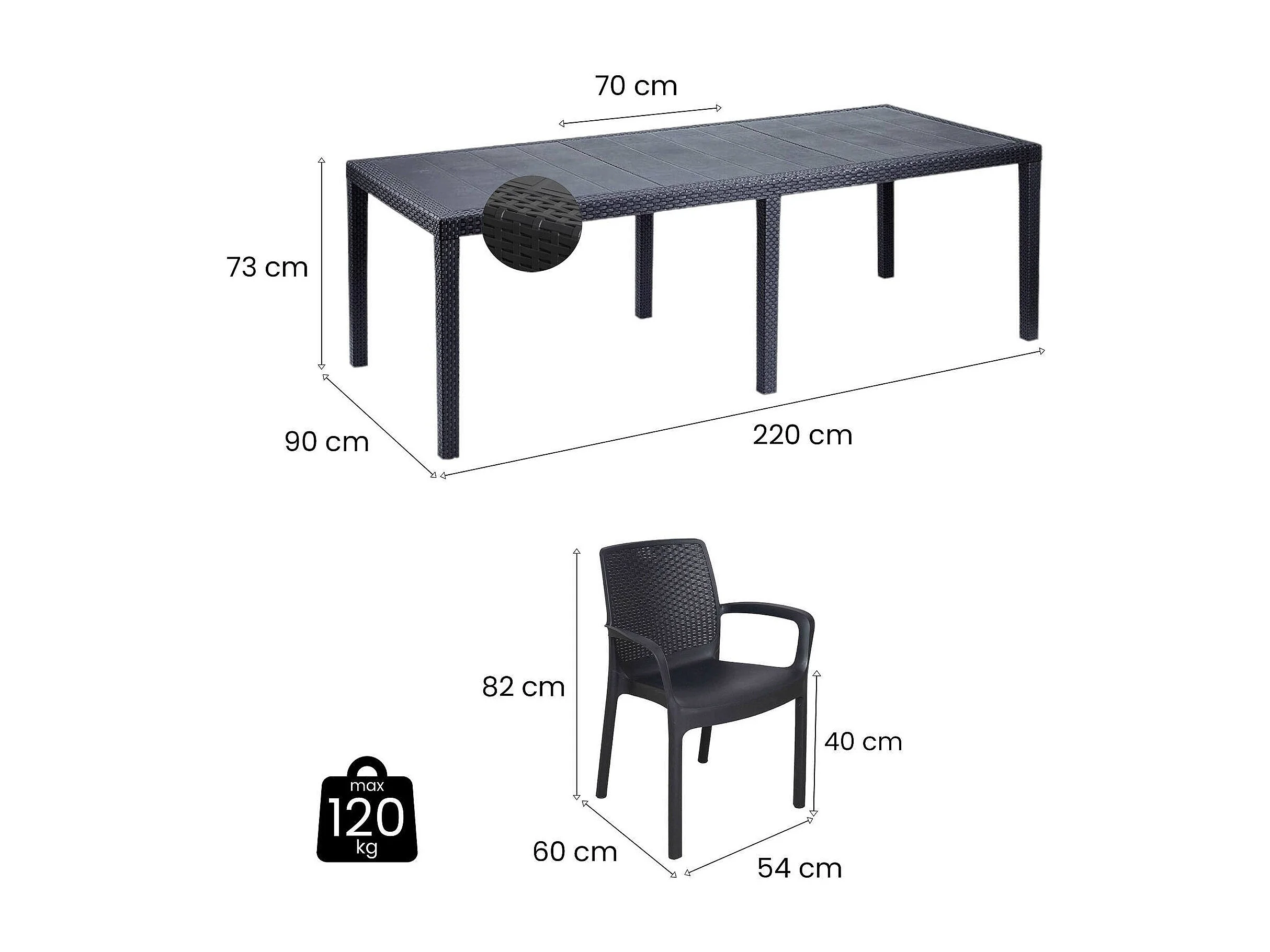 Table d'extérieur Manarola, Table à manger rectangulaire extensible avec 4 chaises incluses, Table et sièges de jardin effet rotin, 100% Made in Italy, Anthracite