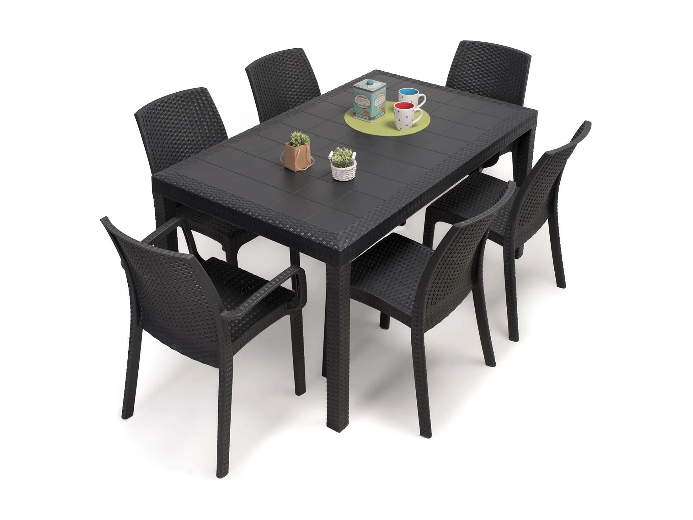 Table d'extérieur Portici, Étagère à manger rectangulaire, Table de jardin polyvalente effet rotin, 100% Made in Italy, 150x90h72 cm, Anthracite