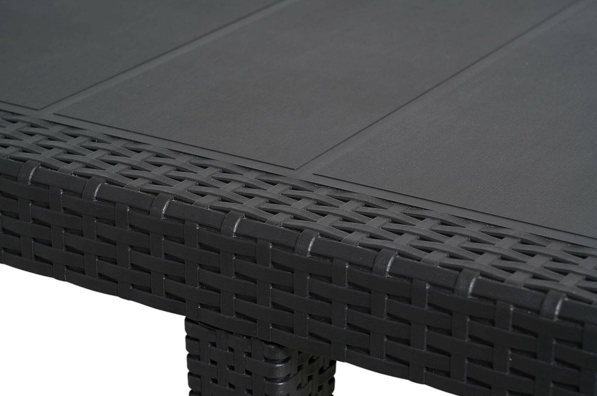 Table d'extérieur Roma, Etagère à manger rectangulaire extensible, Table de jardin extensible effet rotin, 100% Made in Italy, 150/220x90h72 cm, Anthracite