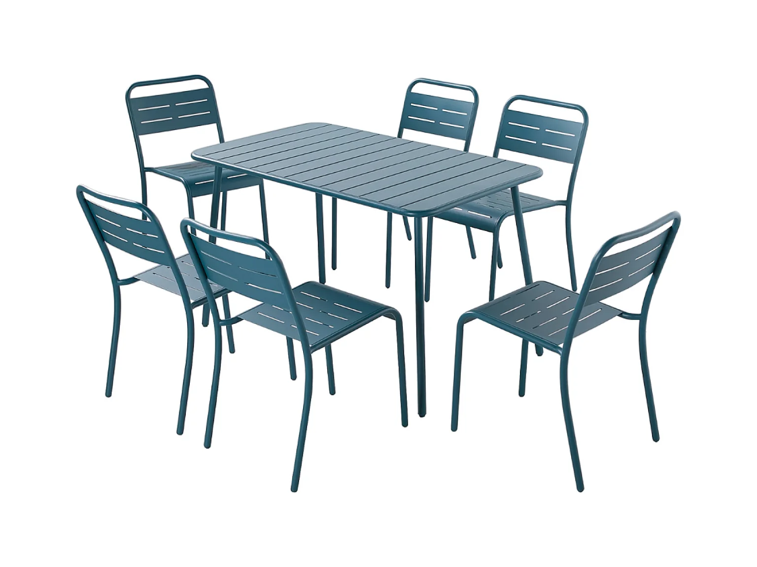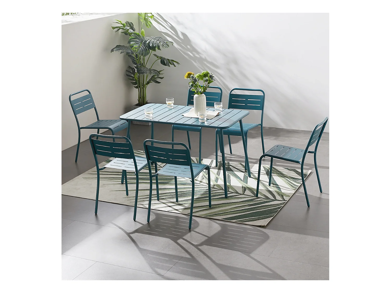 Table de jardin ractangulaire en métal bleu pacific - Palavas