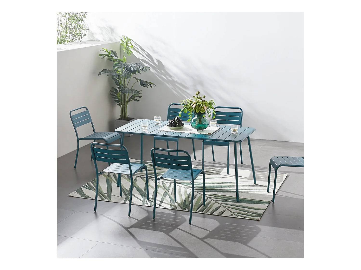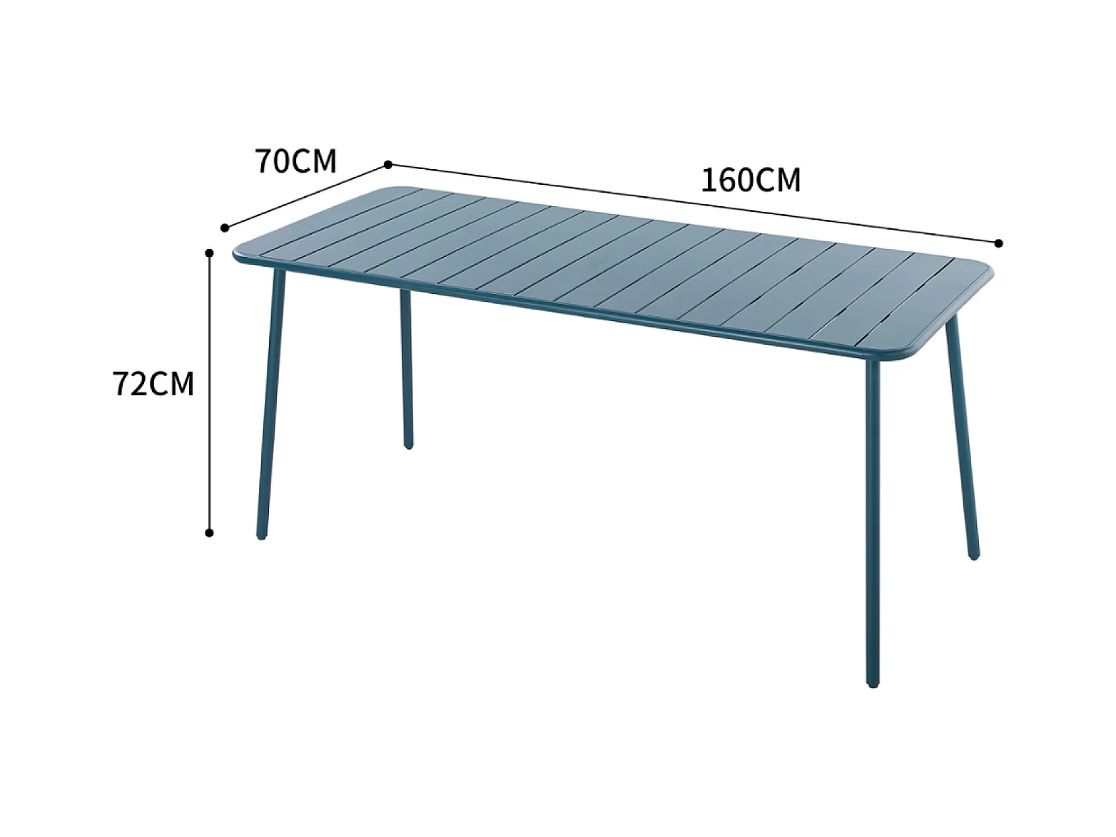 Table de jardin ractangulaire en métal bleu pacific - Palavas