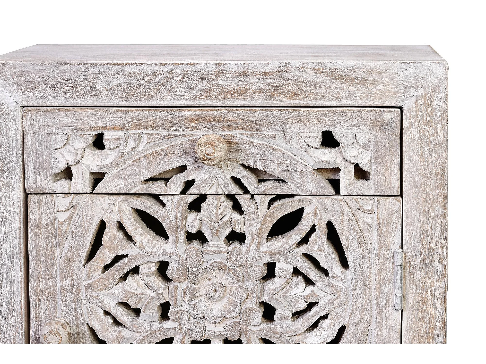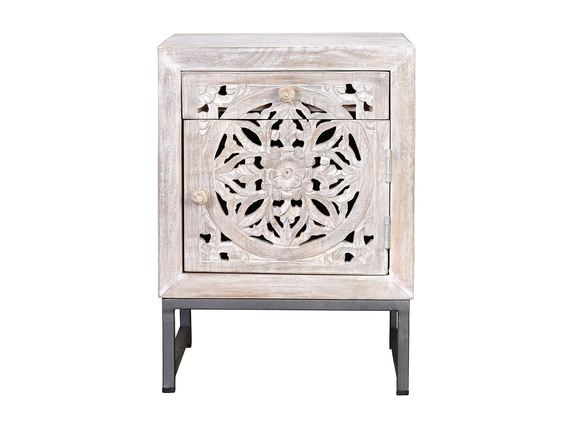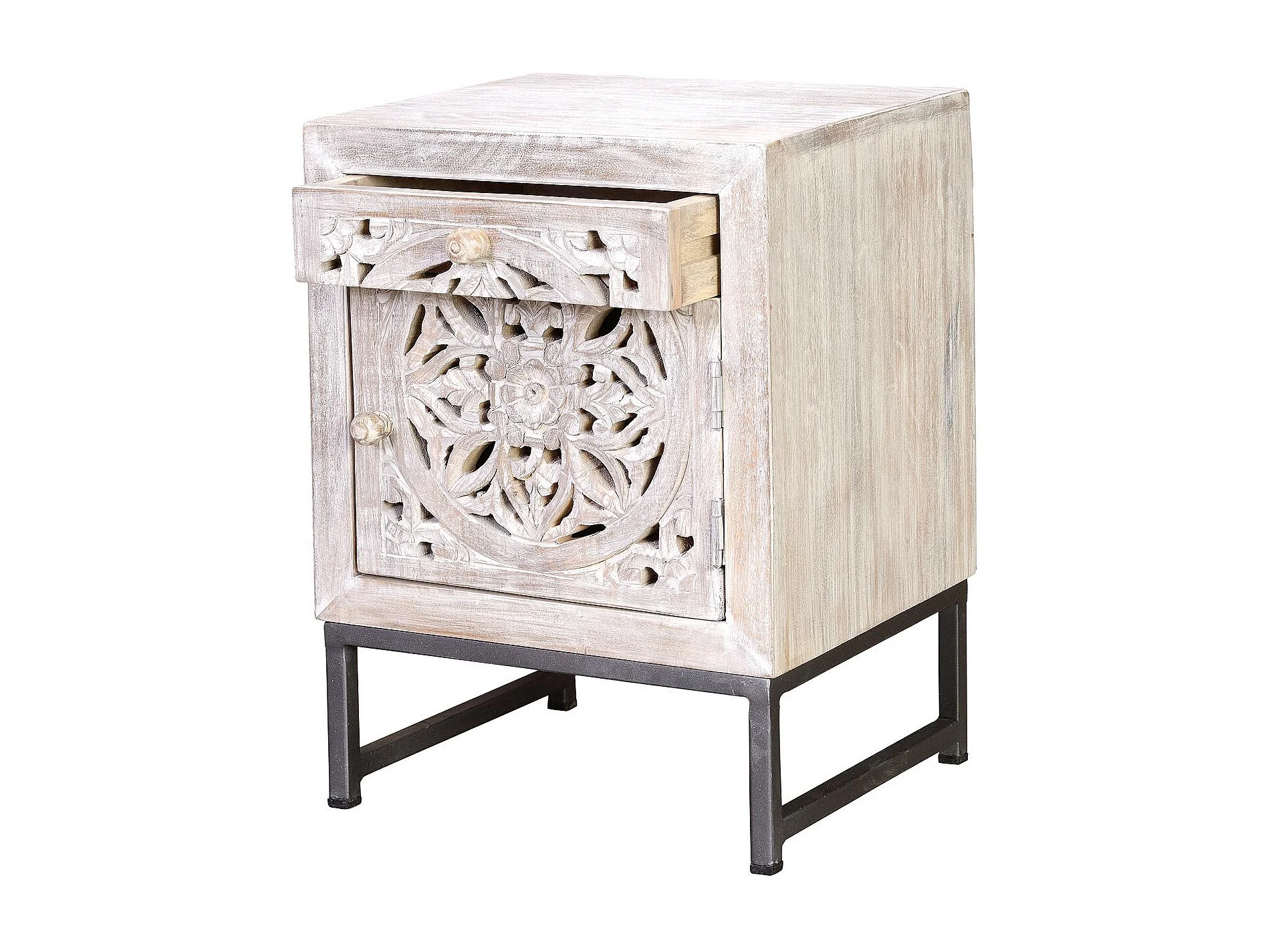 Table de chevet - 1 tiroir et 1 niche - Pin - Blanc - GUERANDE