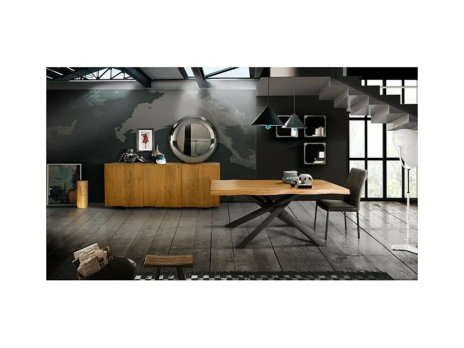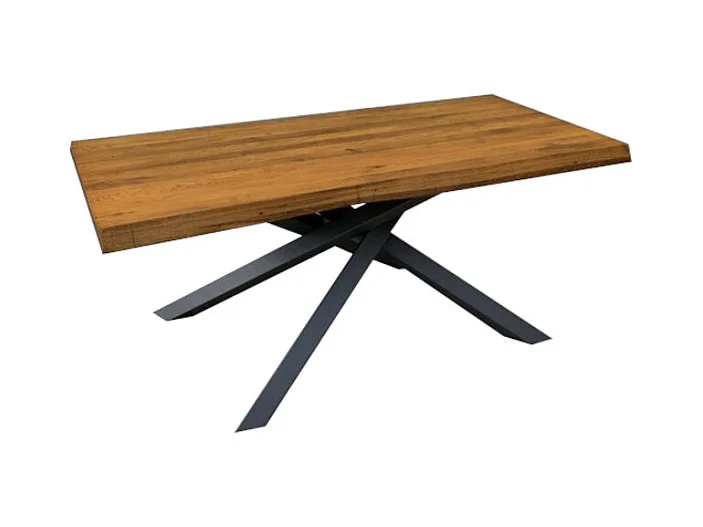 Table en chêne massif noueux, pieds en métal noir, 180x90 cm - PARIOLI