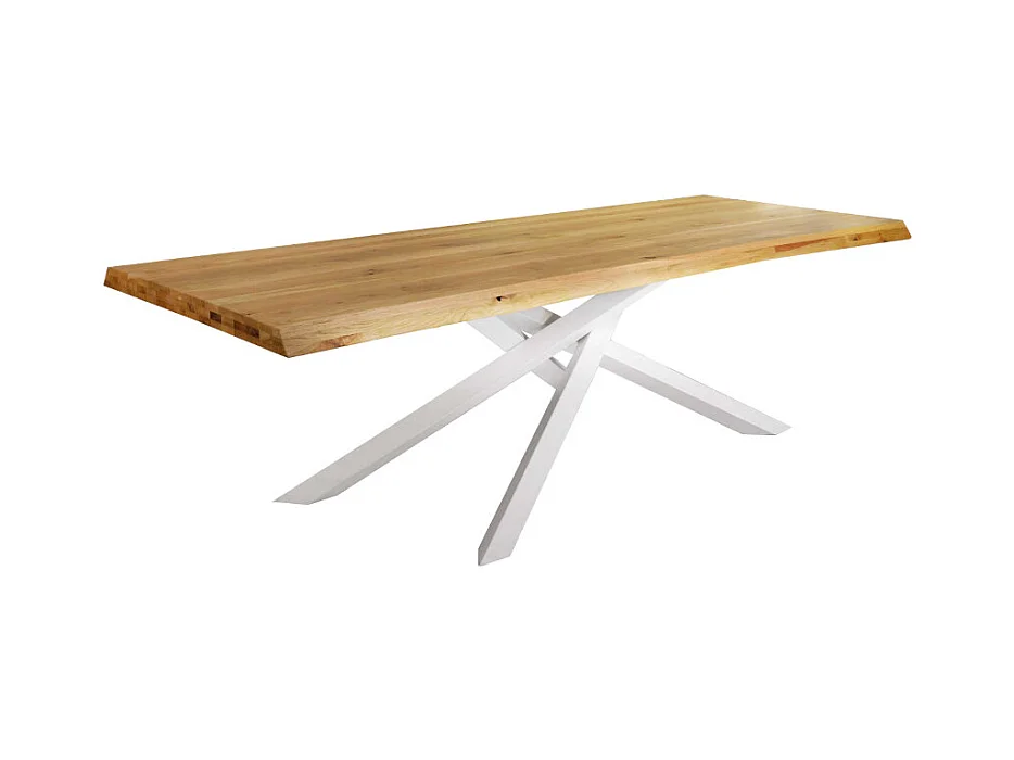 Table en chêne naturel massif, pieds en métal blanc, 250x100 cm - BOLGHERI