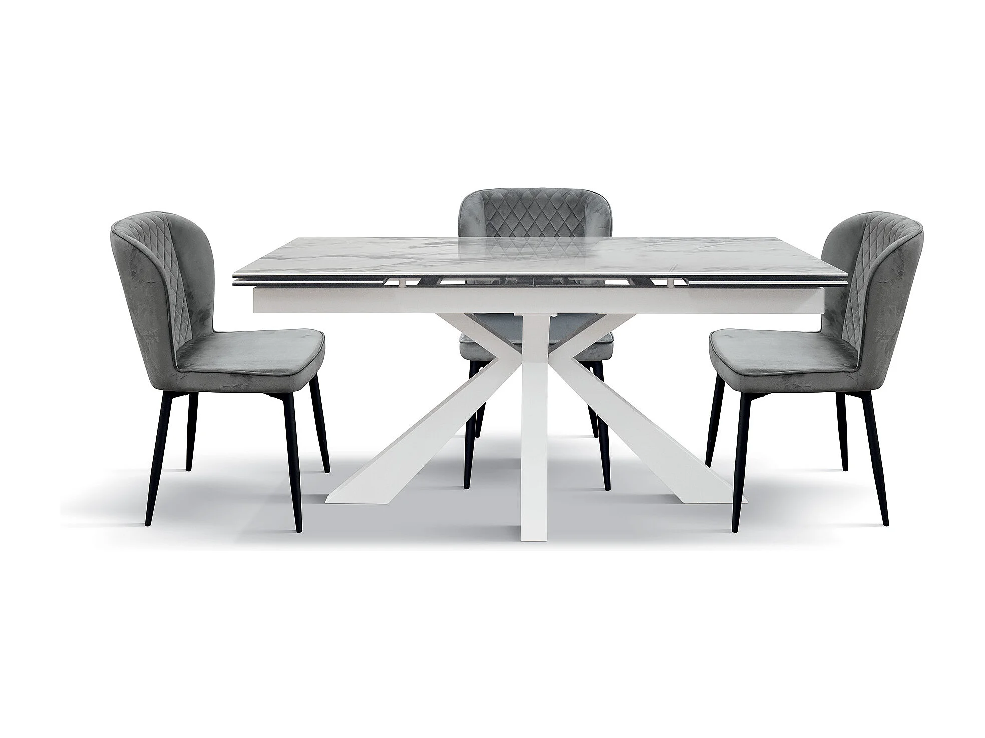 Table en vitrocéramique effet marbre, métal blanc, extensible 160x90 - BEVERLY HILLS
