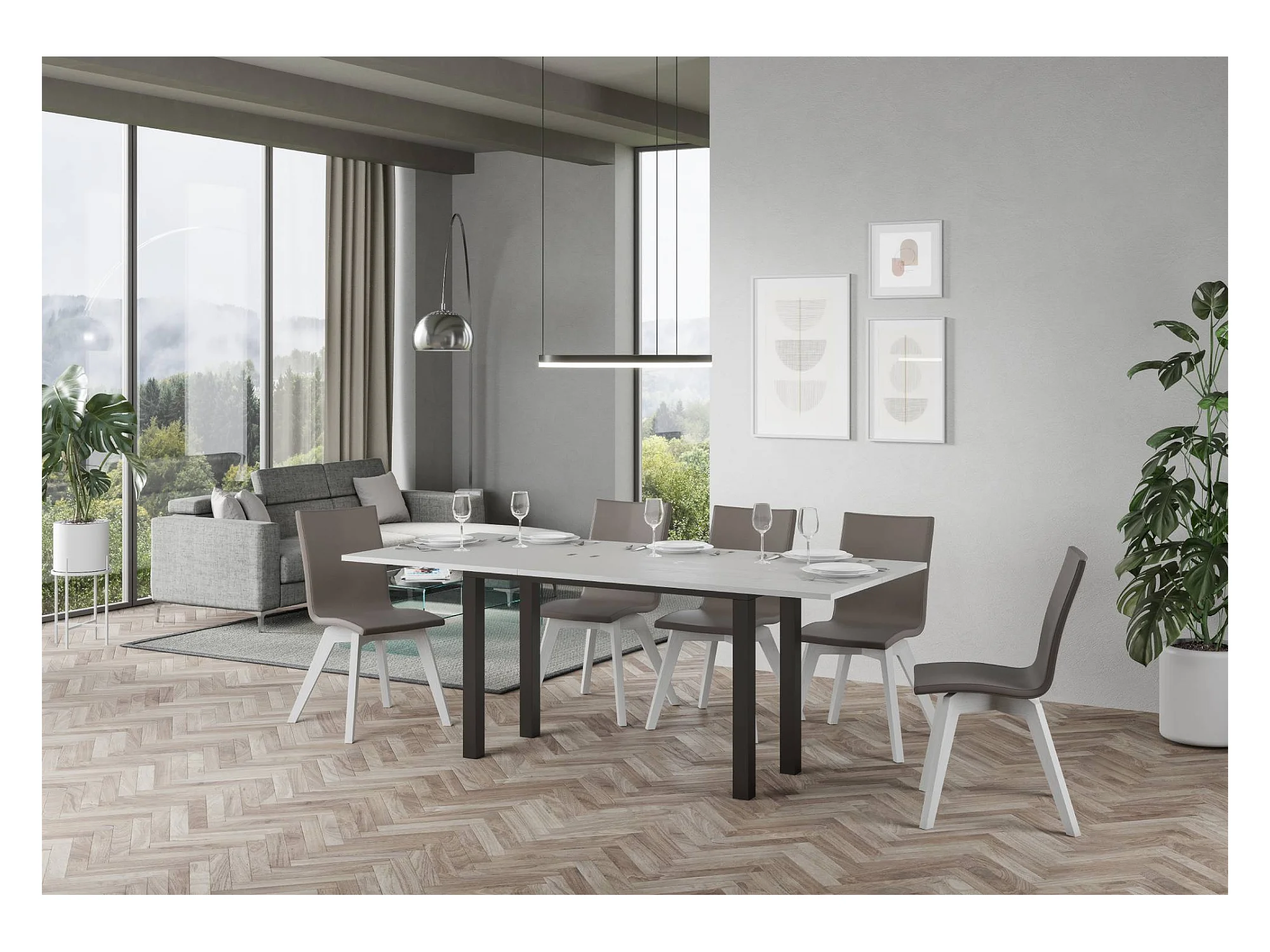 Table extensible 90x160/220 cm Mirhi Frêne Blanc cadre Anthracite