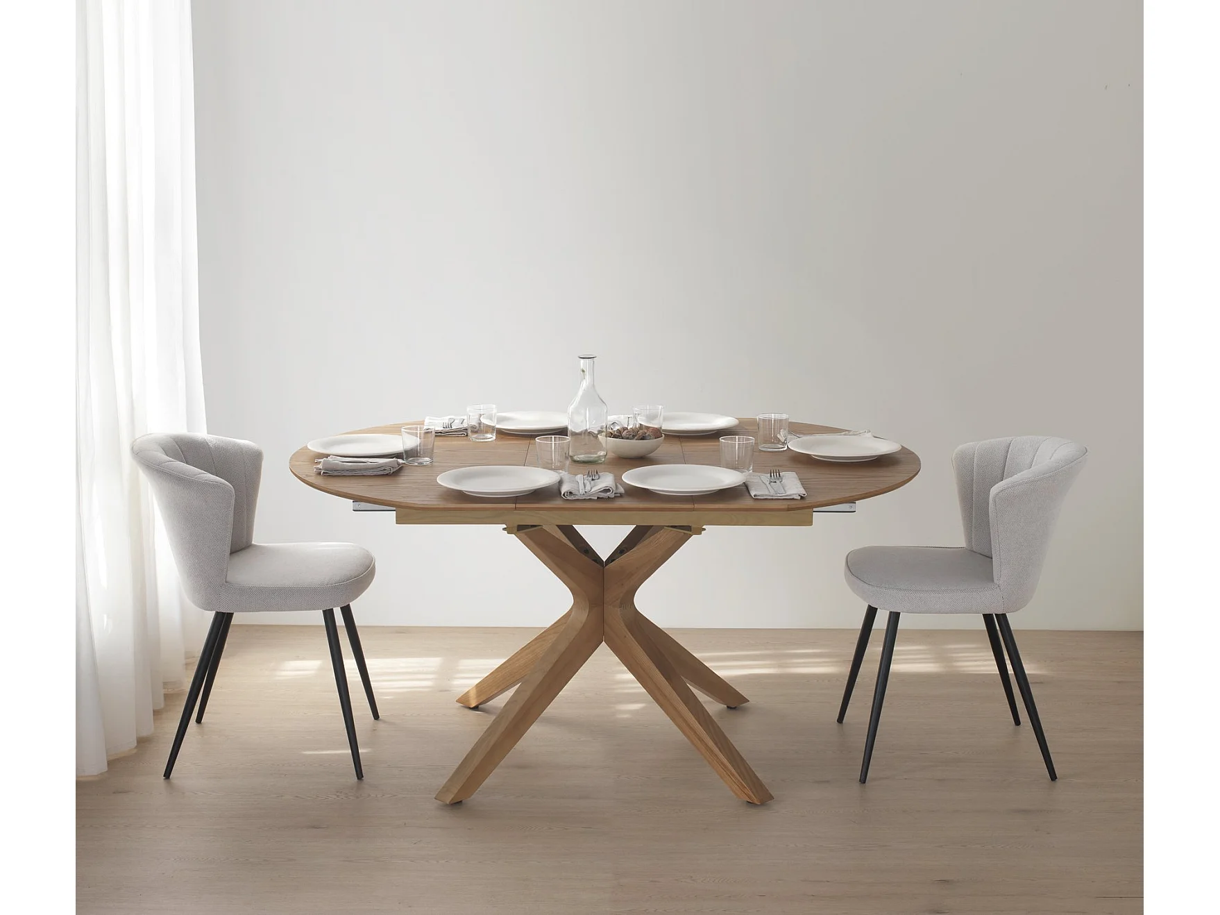 Table extensible 120/160x90 pieds en chêne et plateau en frêne