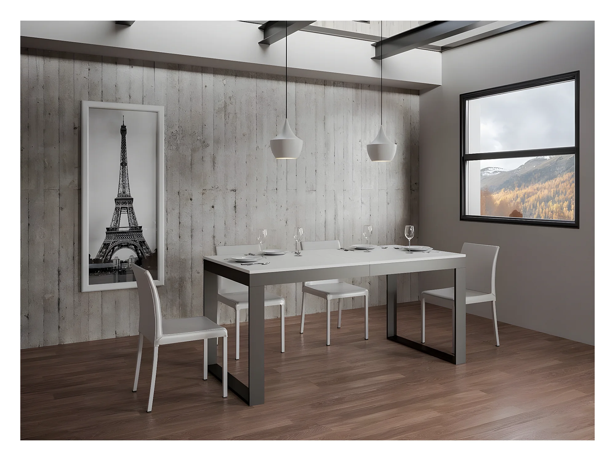 Table extensible 180 à 284cm blanc et métal anthracite Likro