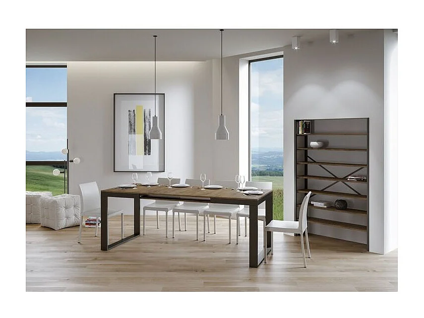 Table à manger extensible Tiroz evolution-Marron-4 pieds-180 à 440 cm