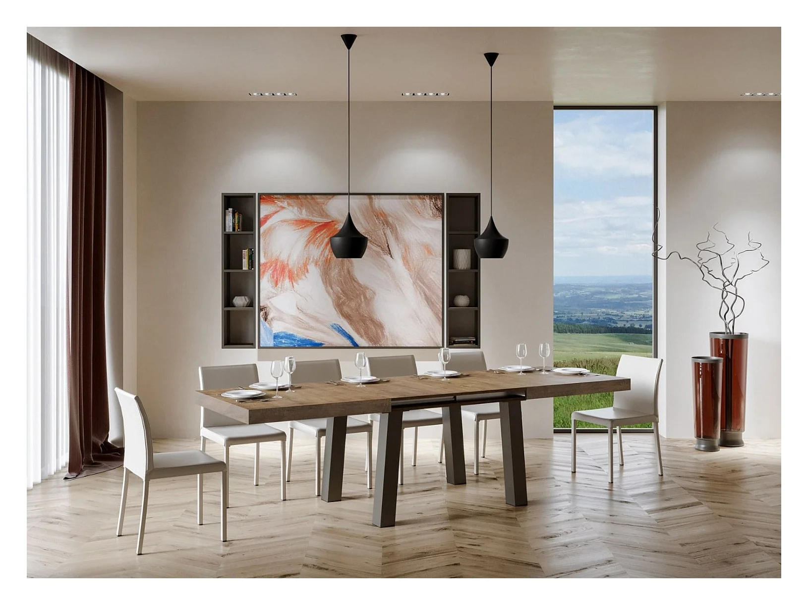Table extensible 6 à 12 places L 160 à 264cm marron et pieds gris foncé Patone