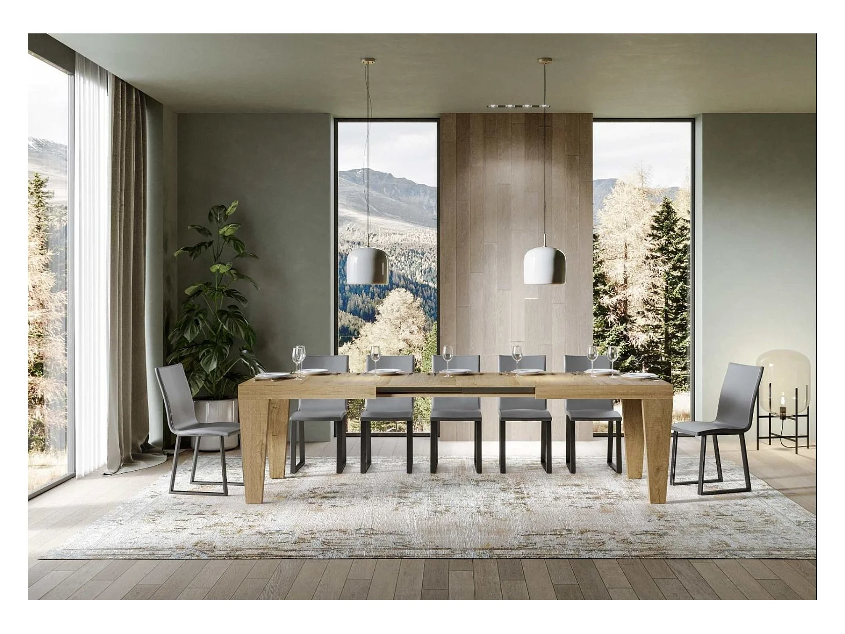 Table extensible bois clair et cadre anthracite 180-440cm Klass