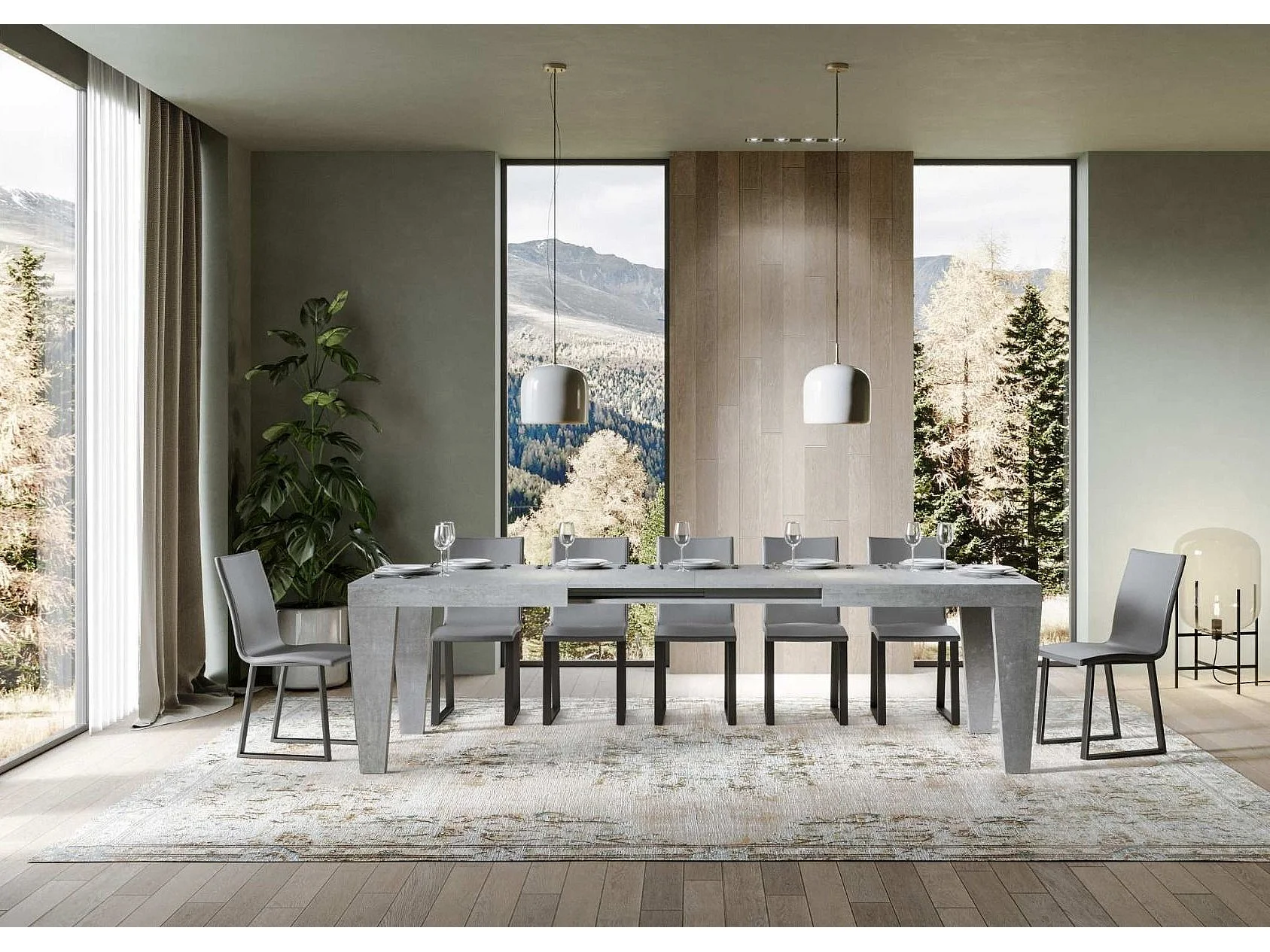 Table à manger extensible Tiroz-Couleur Gris ciment-4 pieds-5 rallonges épaisses-180 à 440cm