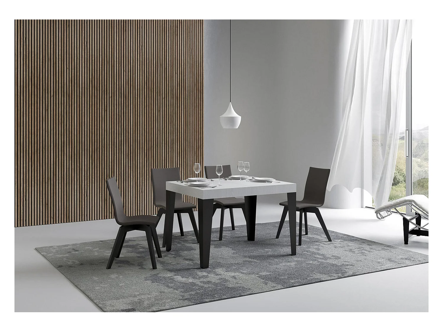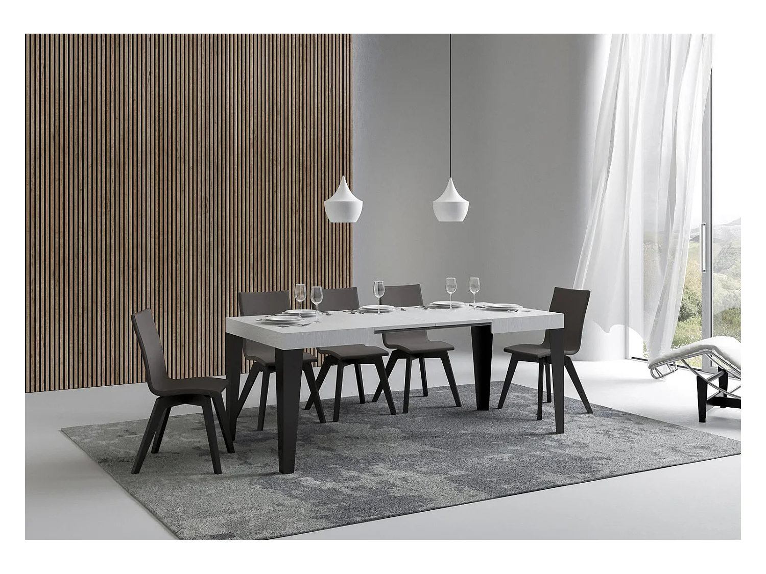 Table extensible 70x110/194 cm Flame Frêne Blanc cadre Anthracite