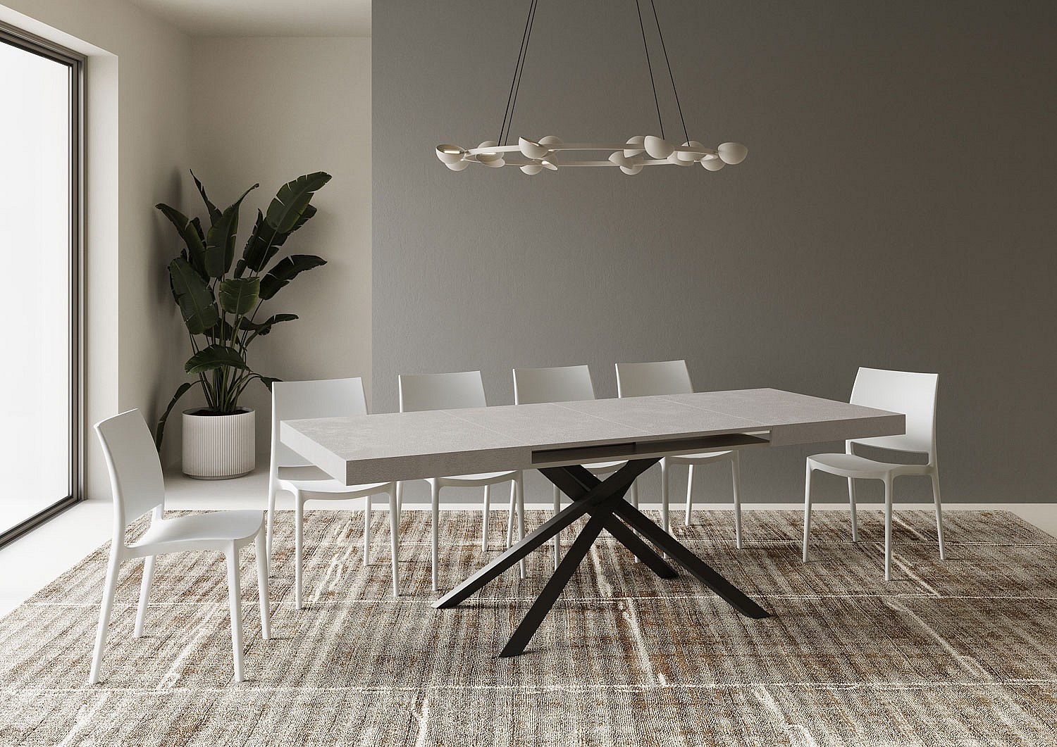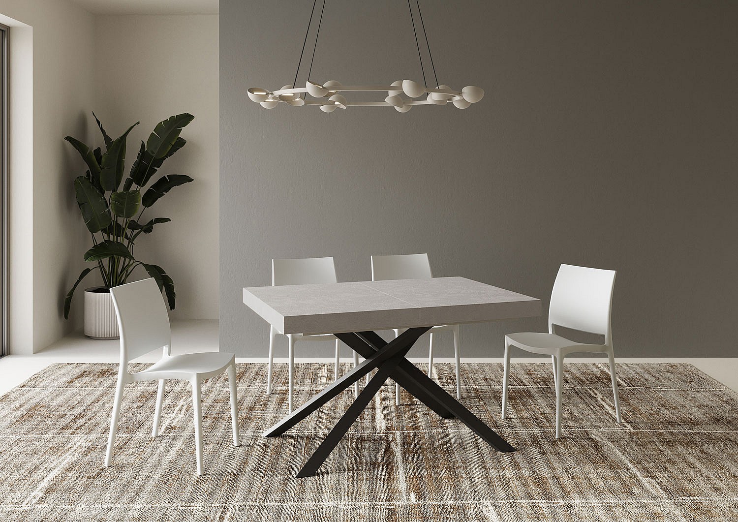 Table extensible 90x120/224 cm Abbraccio gris béton pieds anthracite