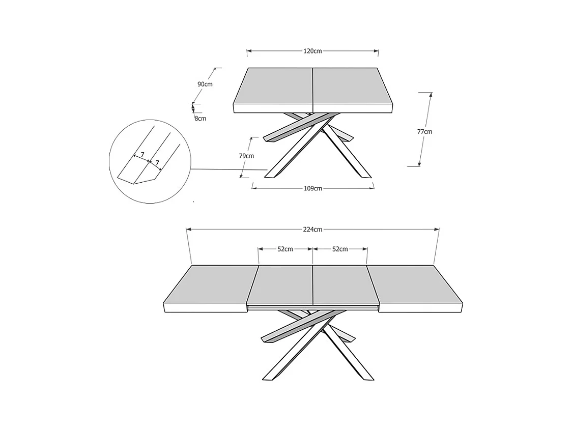 Table extensible 90x120/224 cm Famas Premium Noyer cadre Anthracite