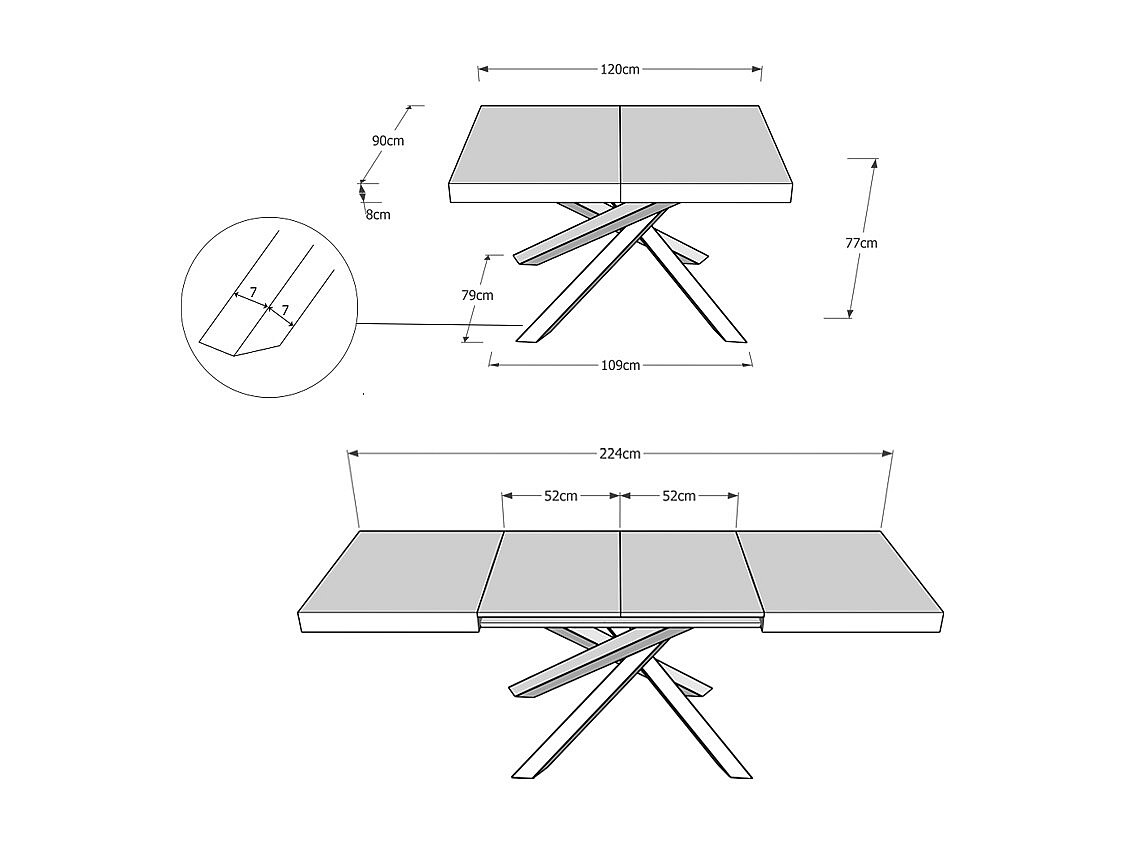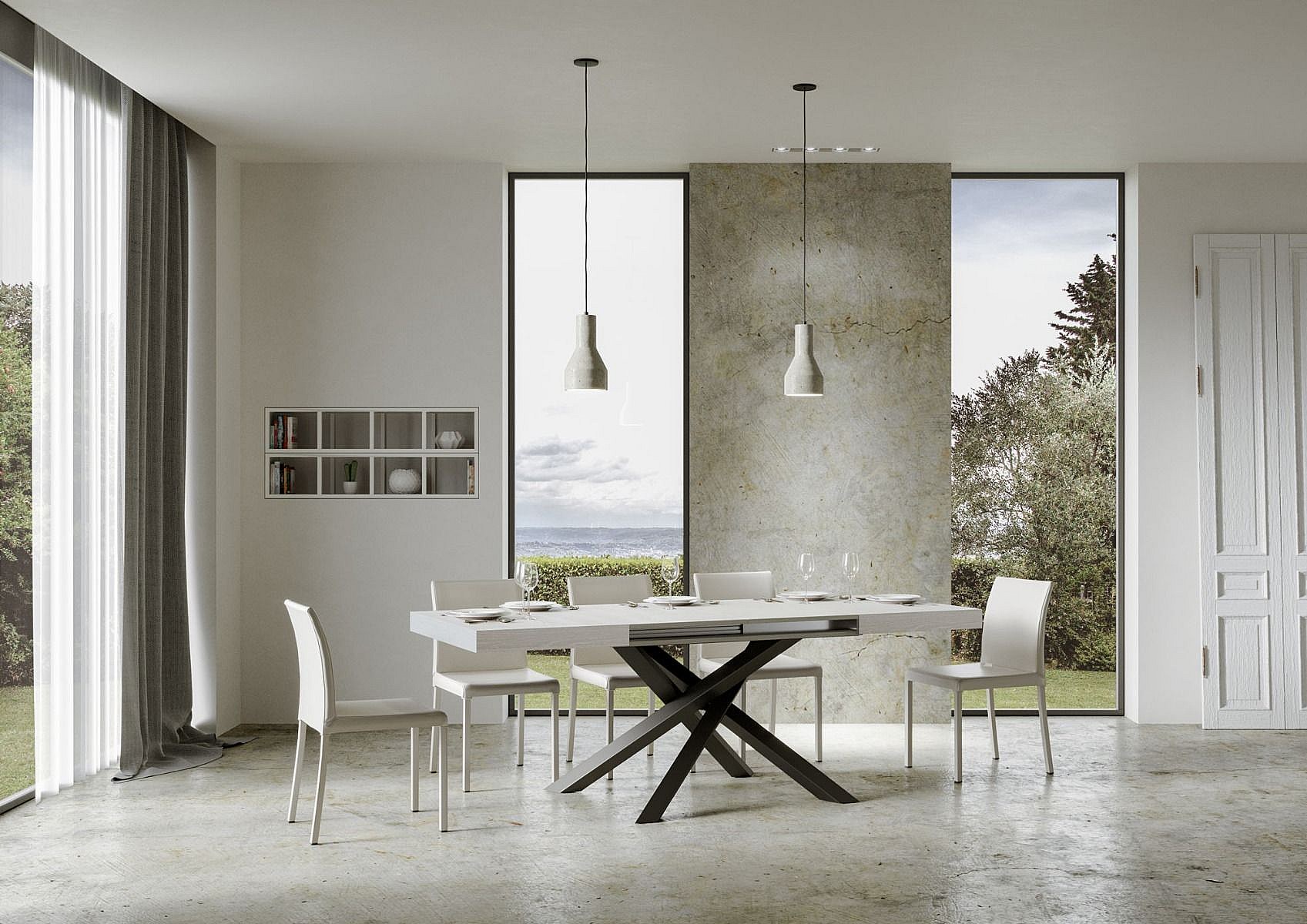 Table extensible 90x120/224 cm Flame Frêne Blanc cadre Anthracite