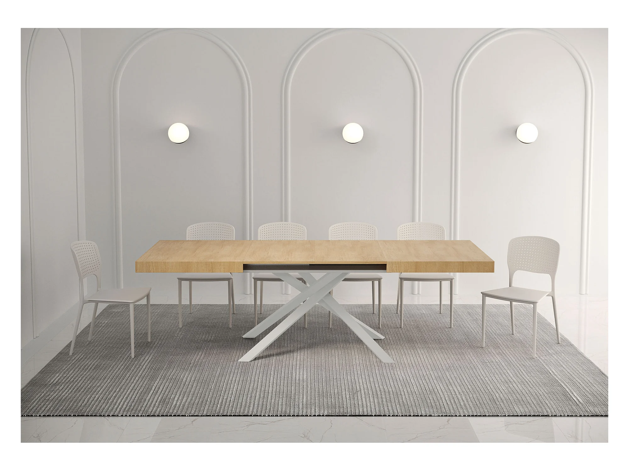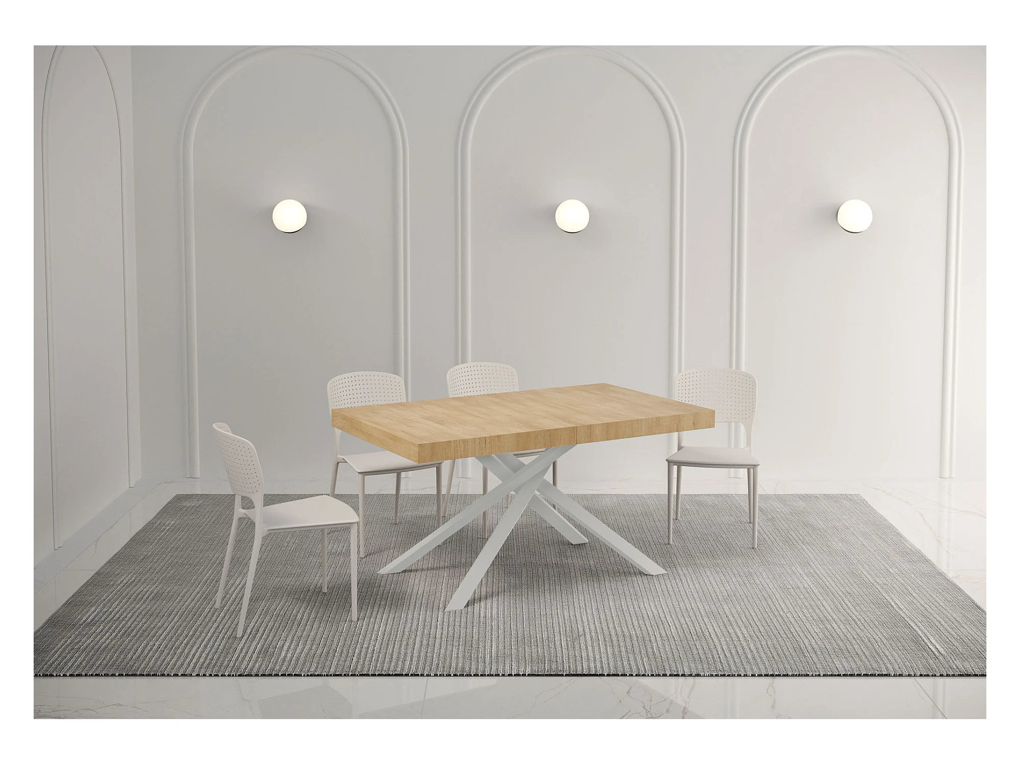 Table extensible 90x140/244 cm Karida chêne nature pieds blanc