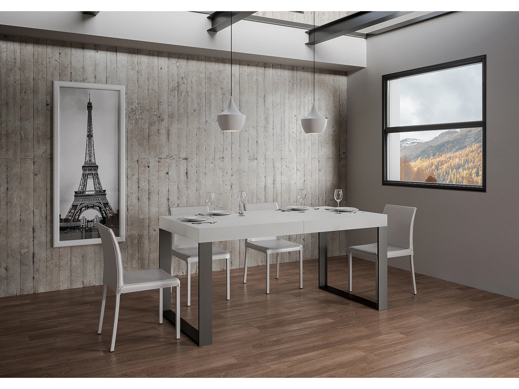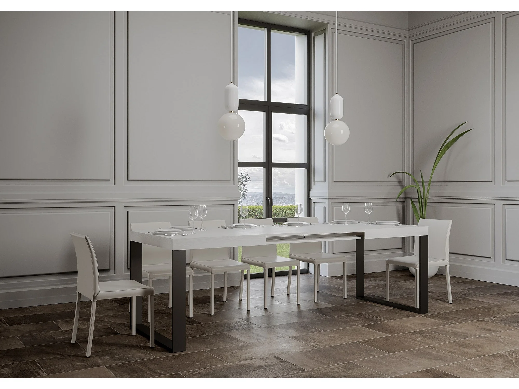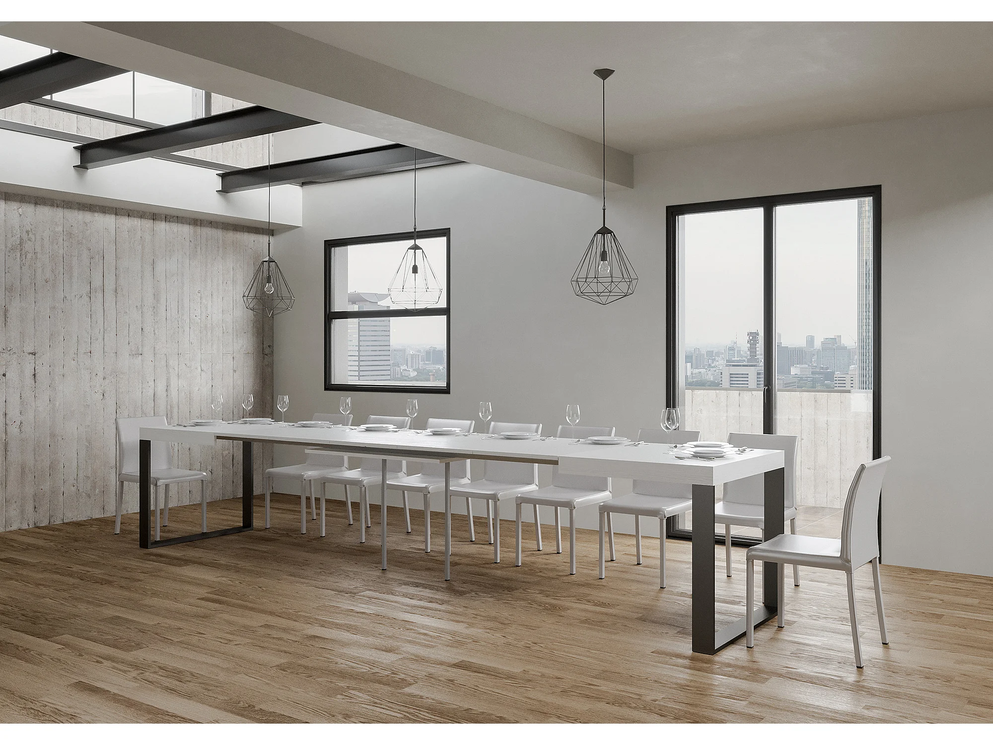 Table extensible 140/400x90 cm Tecno frêne blanc pieds anthracite