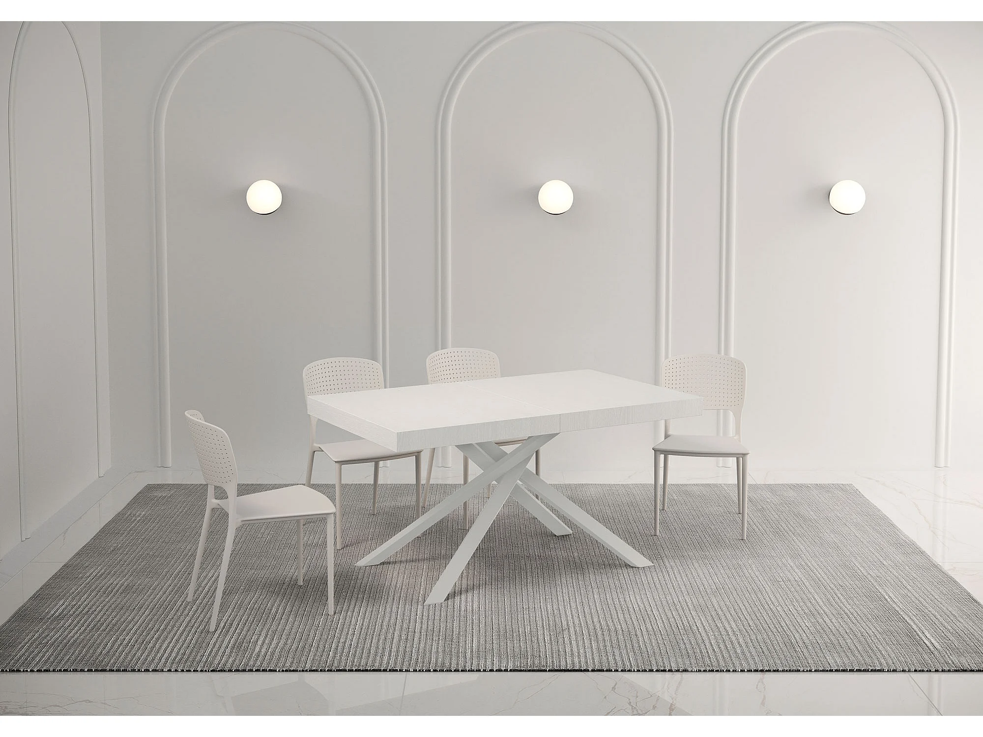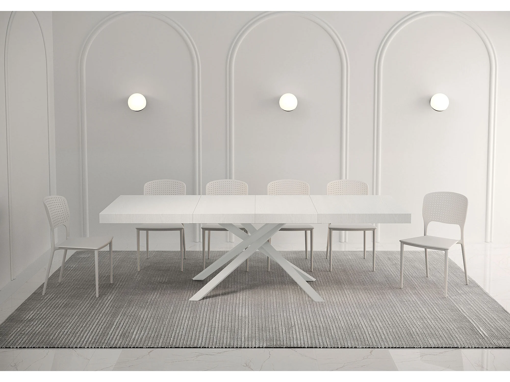 Table extensible 160/264x90 cm Karida Premium frêne blanc pieds blancs