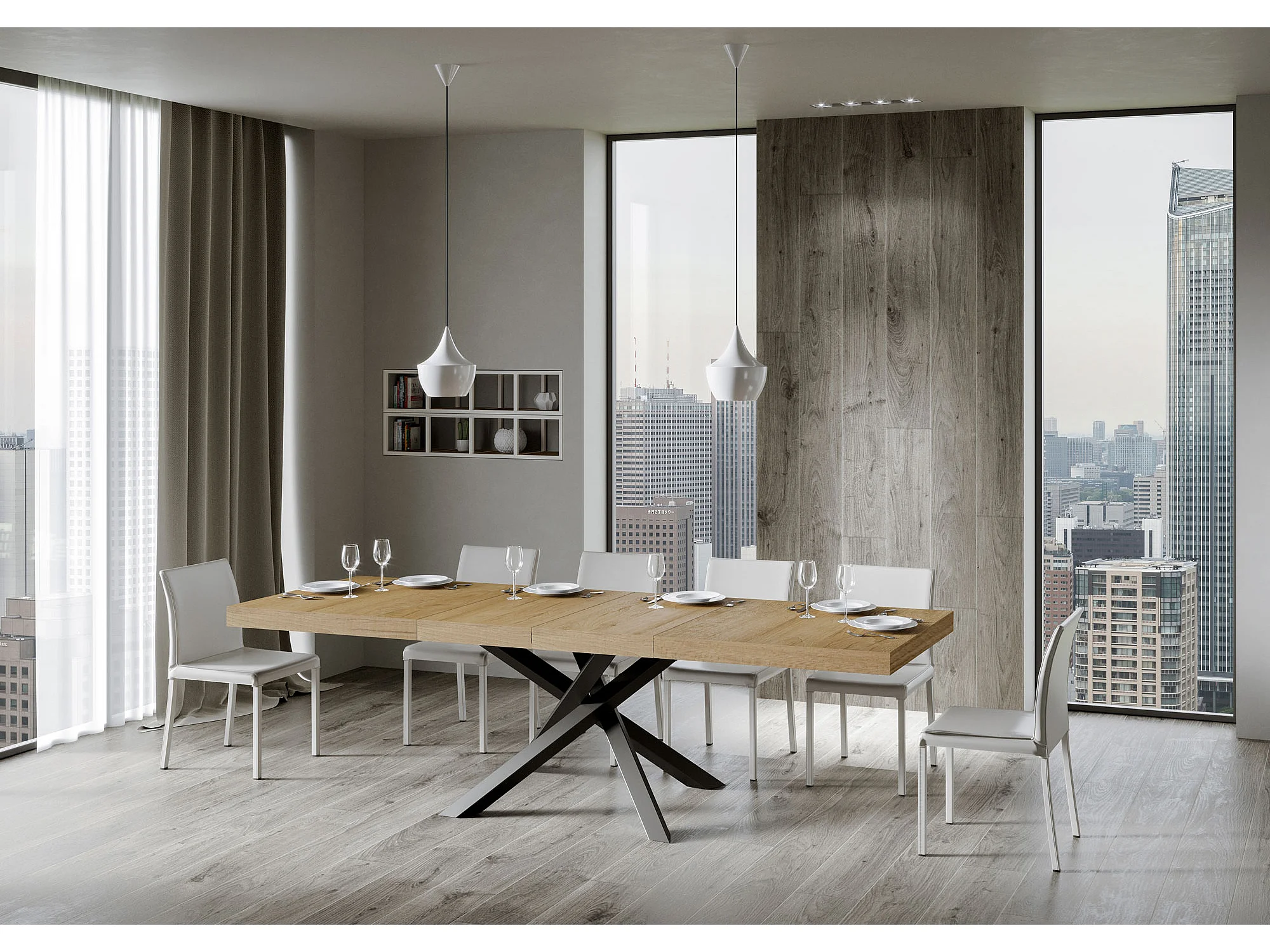 Table extensible 160/264x90 cm Volantis Premium chêne nature pieds anthracite