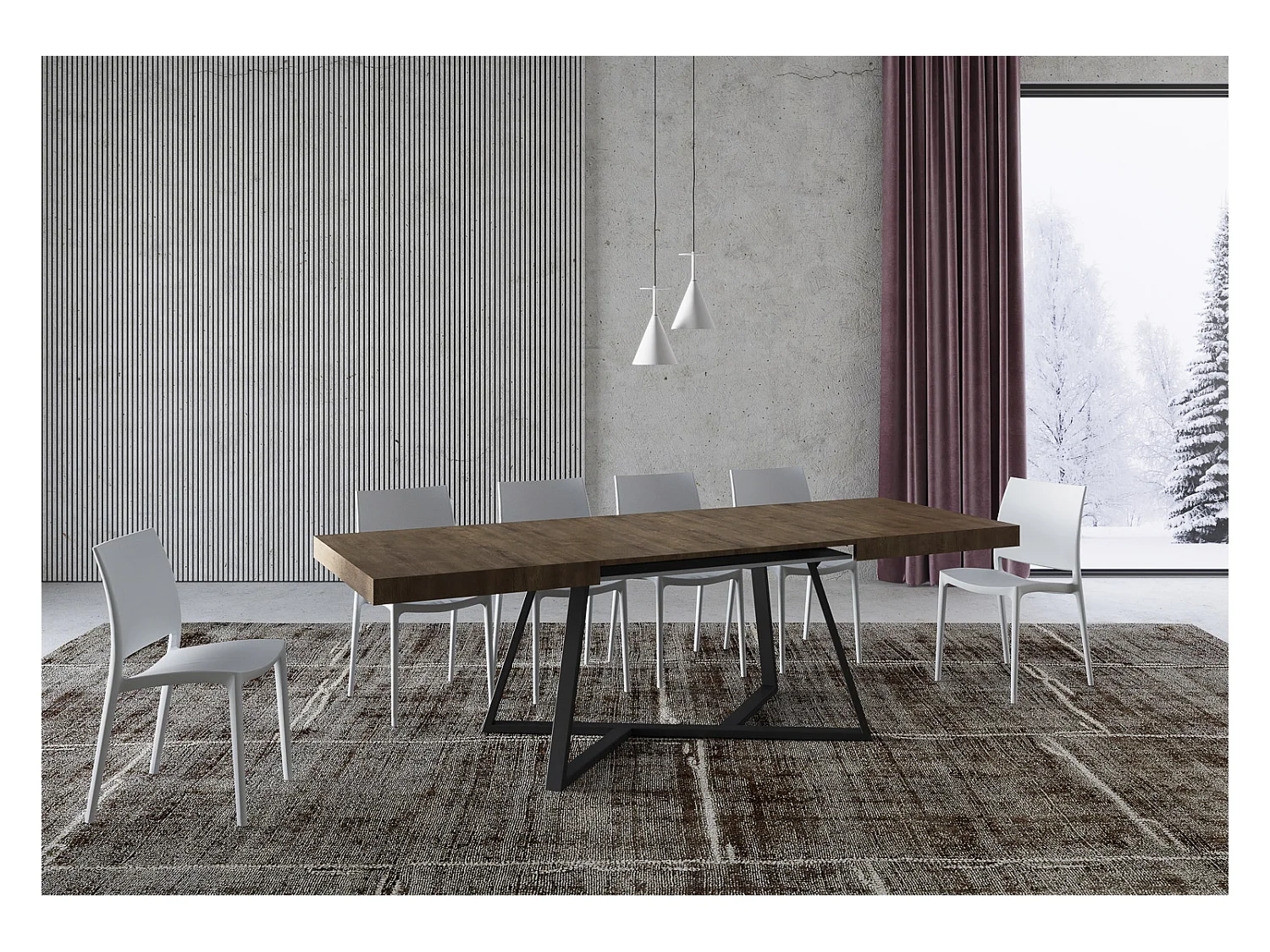 Table extensible 90x180/440 cm Terium noyer pieds anthracite