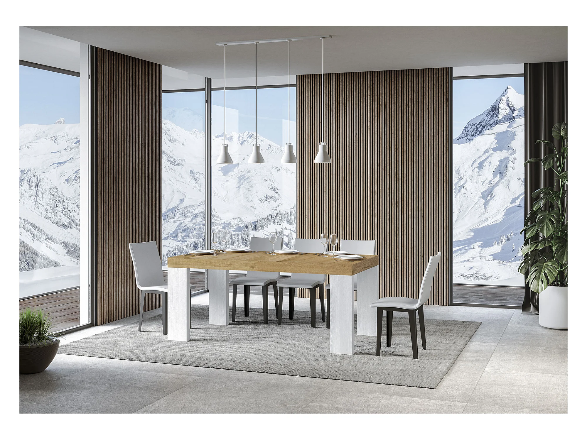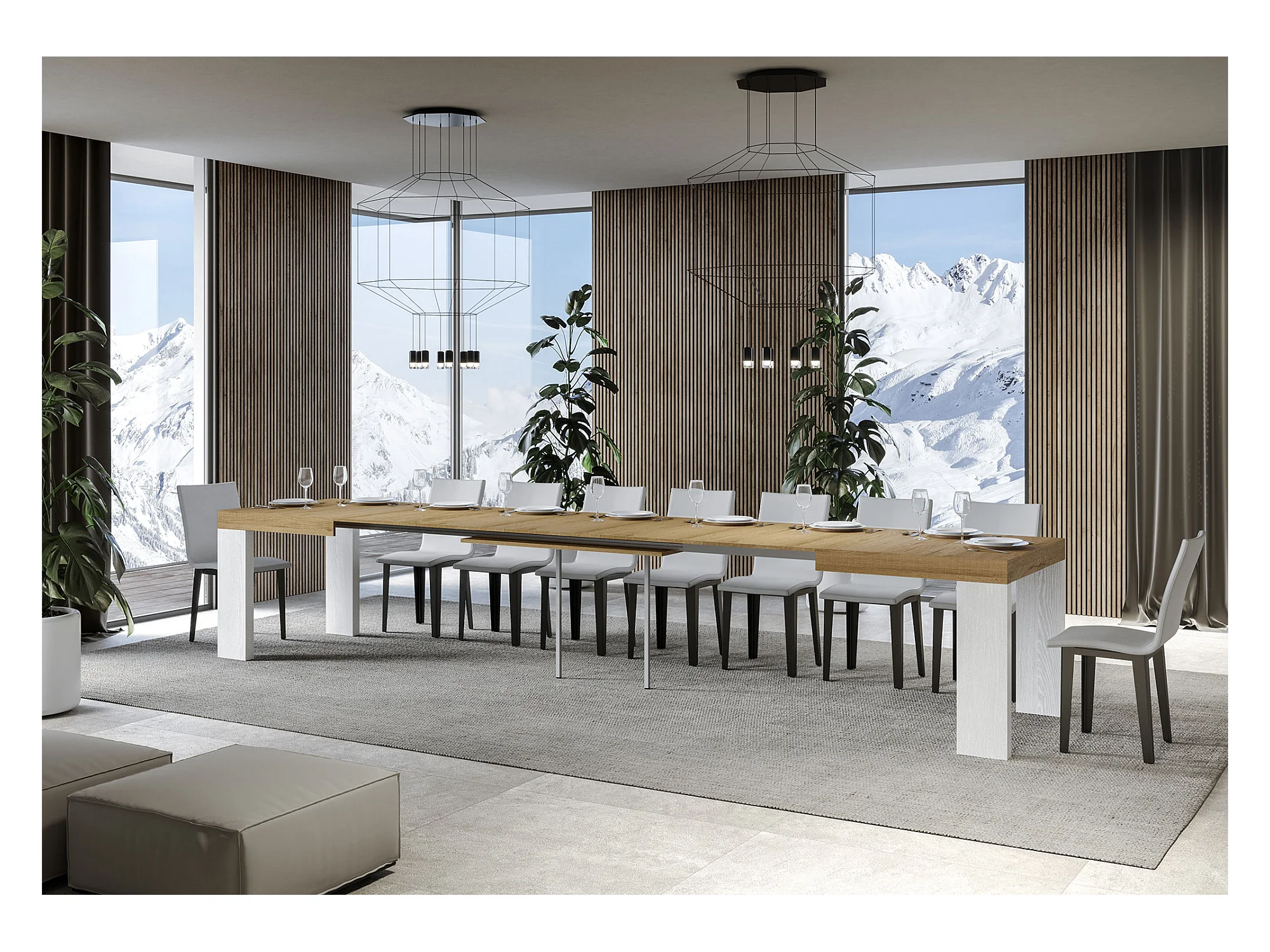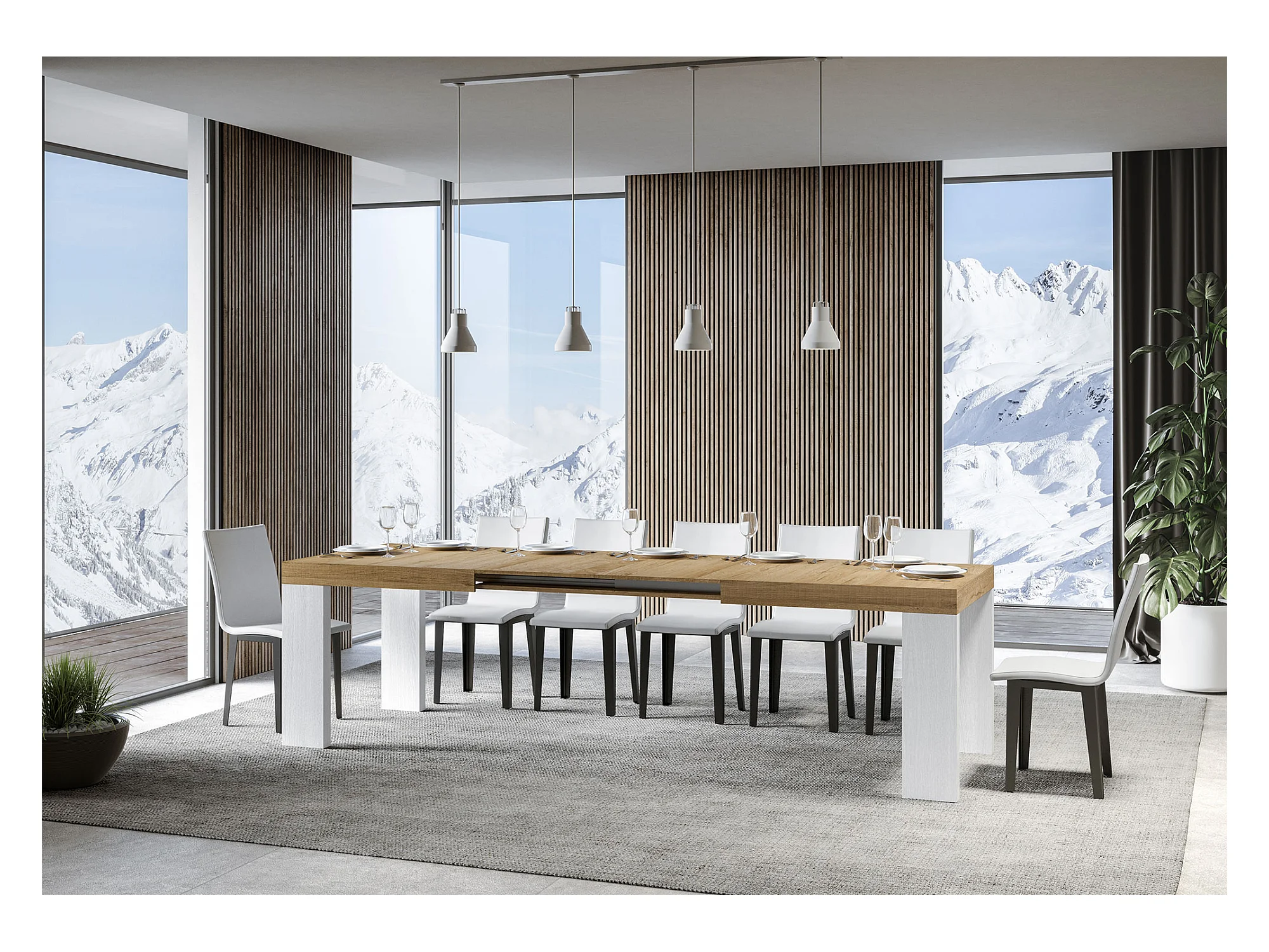 Table extensible 90x160/420 cm Spimbo Mix dessus Frêne Blanc pieds Chêne Nature