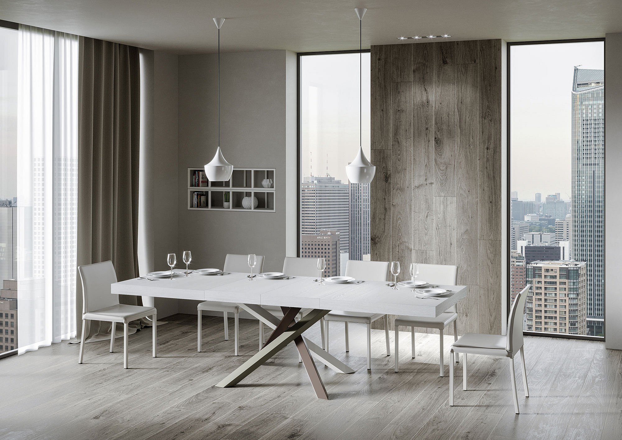 Table extensible 90x180/284 cm Proxy Premium Frêne Blanc cadre Anthracite