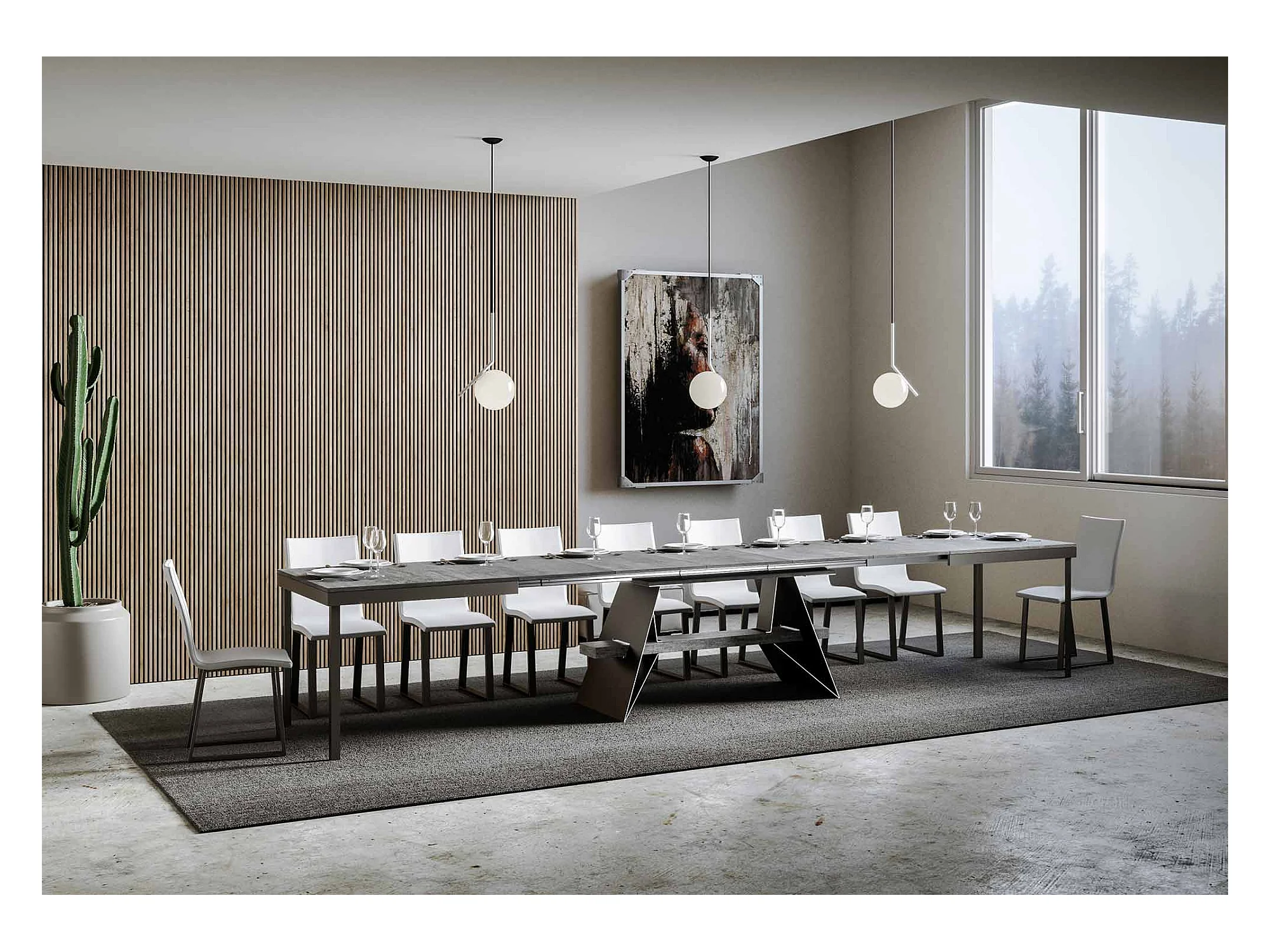 Table extensible 90x180/440 cm Tecno Evolution Gris Béton cadre Anthracite