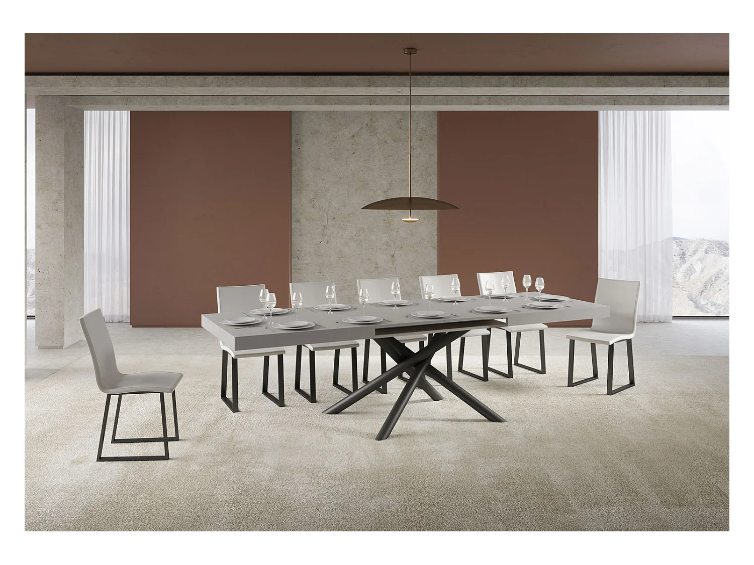 Table extensible 90x180/440 cm Famas Evolution Gris Béton cadre Anthracite
