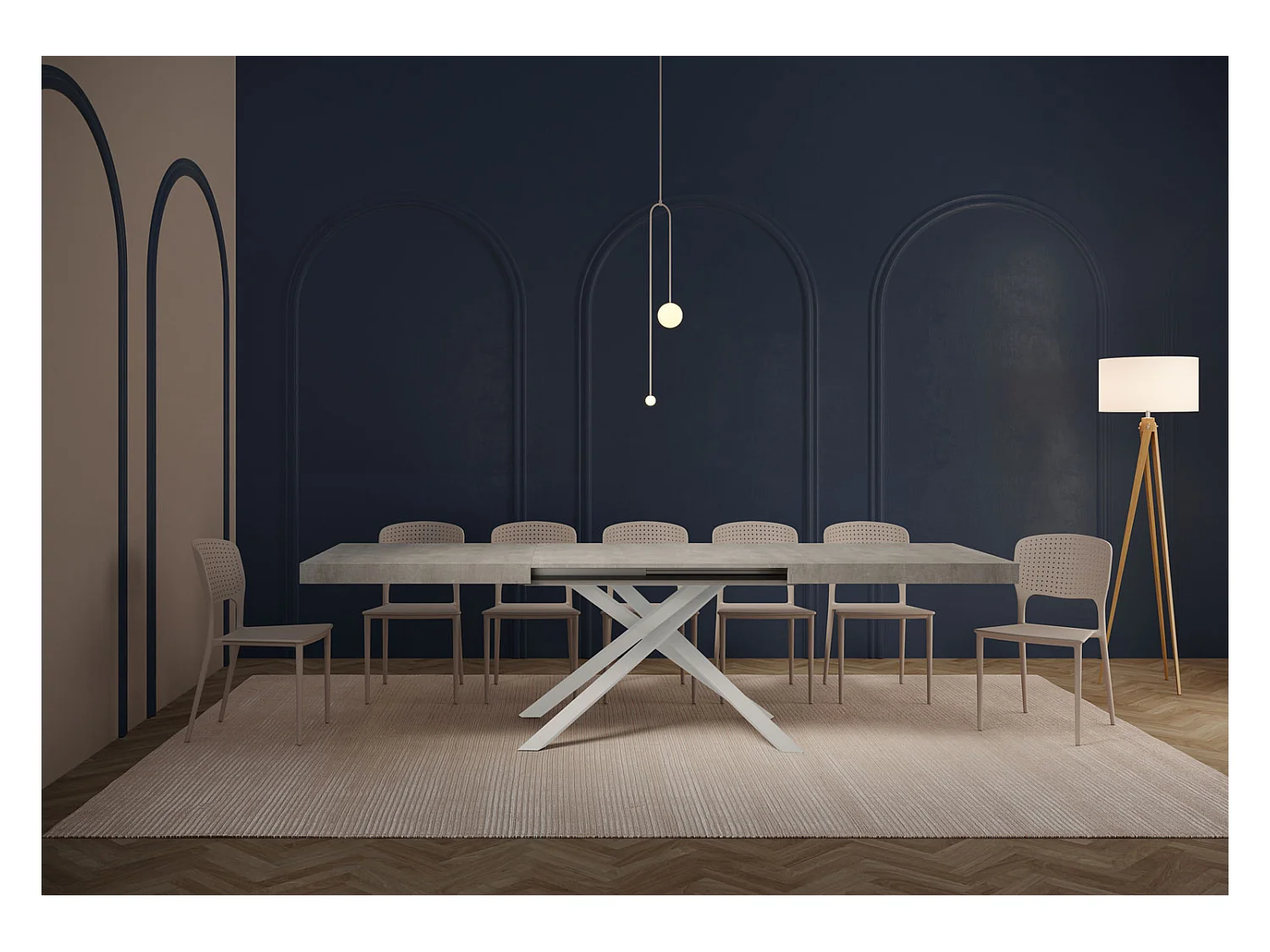 Table extensible 90x180/440 cm Karida gris béton pieds blanc