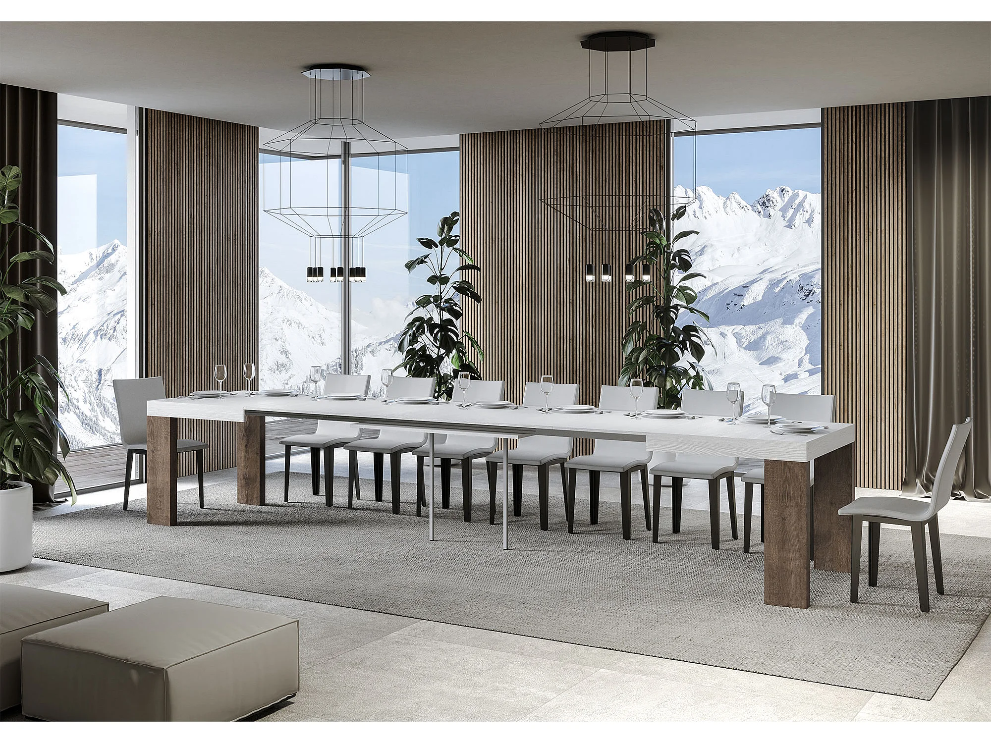 Table extensible 90x180/440 cm Roxell Mix dessus Frêne Blanc pieds Noyer